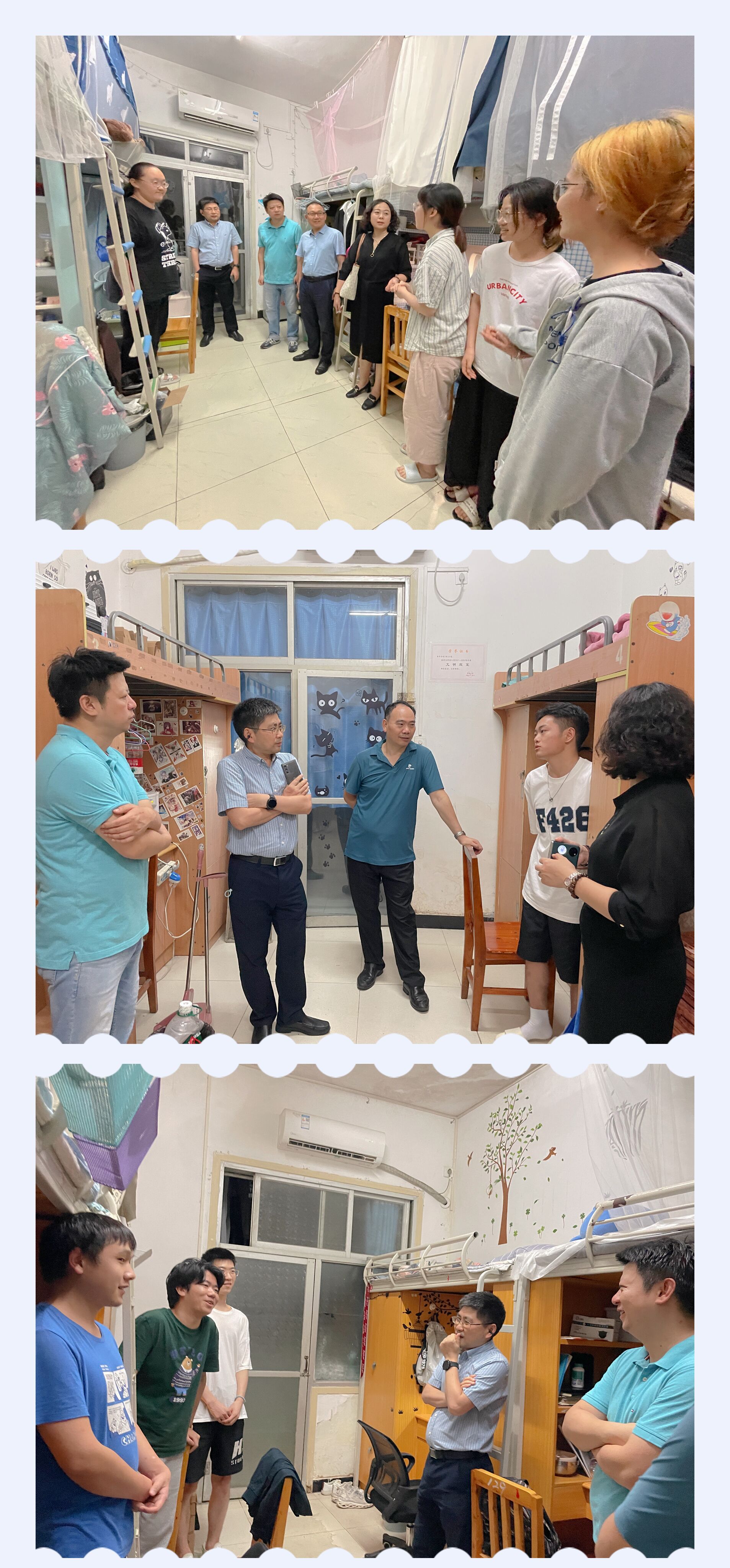 6月19日晚,在2023届毕业生即将离校之际,学院党委书记王熹、院长张应良带领全体党政领导深入学生寝室,走访慰问毕业生,表达离校之际学院对毕业生的深切关怀和美好祝福。