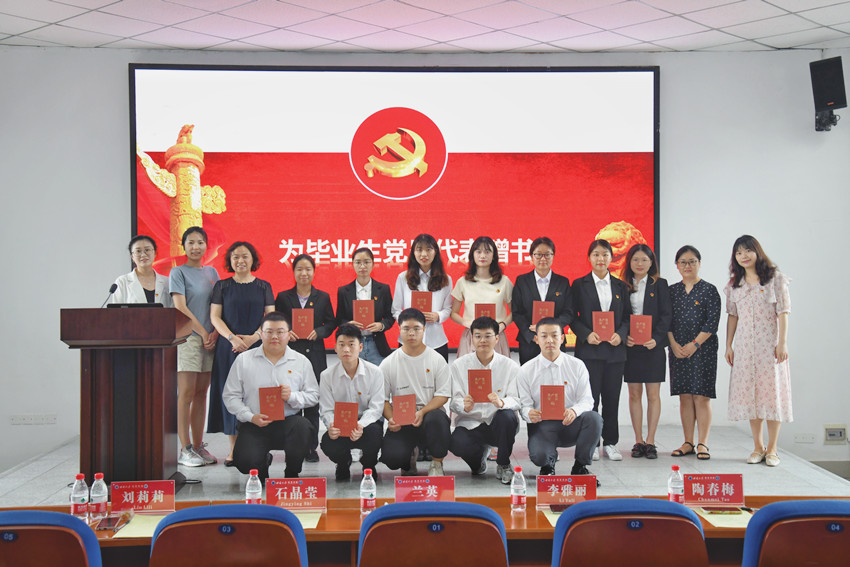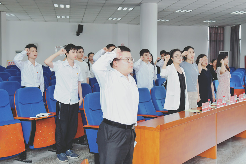 随后,七名毕业生党员代表在党旗下庄严承诺,承诺在未来的学习工作中坚定理想信念,永葆初心党性,立足新岗位,创造新业绩,为中华民族的伟大复兴贡献自己的力量。