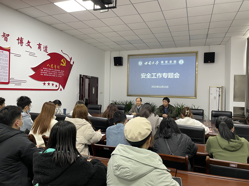 11月13日,yl6809永利集团召开安全工作专题会。学院党委书记周国安,团委书记、学生工作办公室主任廖鹏、全体辅导员及团委学生会干部参加会议。