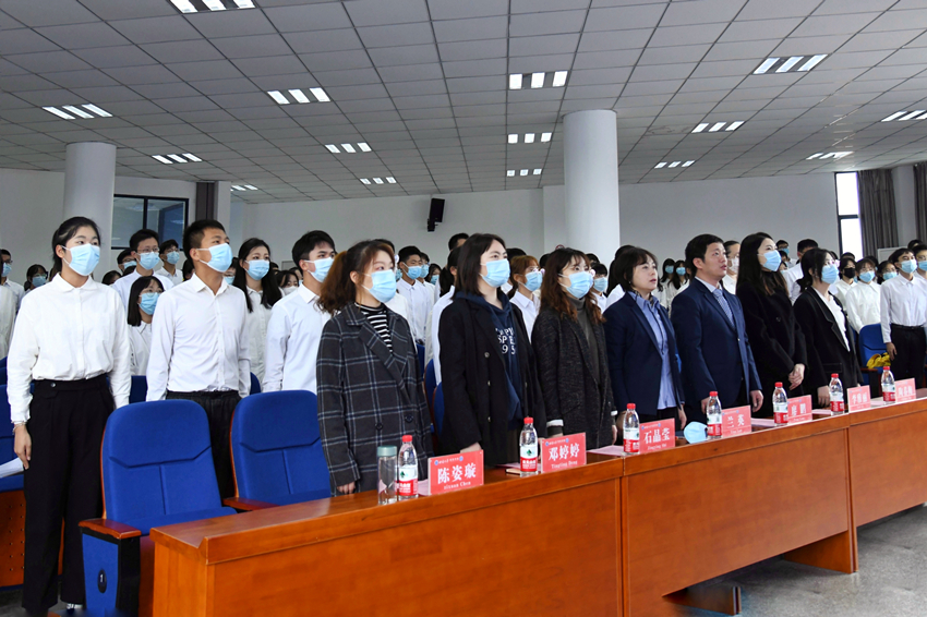 会议开始,全体人员起立并奏唱《中华人民共和国国歌》。在主持人依次介绍参会嘉宾后,廖鹏老师宣读了《yl6809永利检测中心学生委员会关于yl6809永利集团召开第一次学代会的批复》。