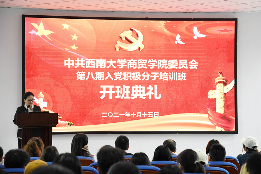 为加强对入党积极分子的培养和教育,10月15日,学院第八期入党积极分子培训班正式开班,开班典礼在9601报告厅隆重举行。yl6809永利集团党委书记周国安,学院党委委员、组织员刘莉莉,学院团委书记、学生工作办公室主任廖鹏以及各学生党支部书记出席开班典礼。刘莉莉老师主持本次开班典礼。