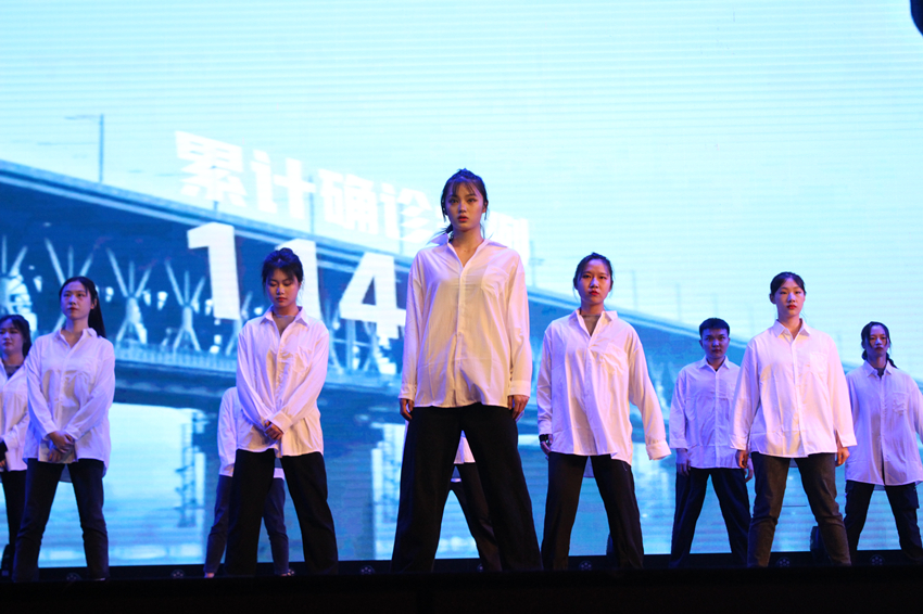 现代舞《众志成城迎曙光》展现了疫情期间全国人民举国同心、自强不息的抗疫精神。
