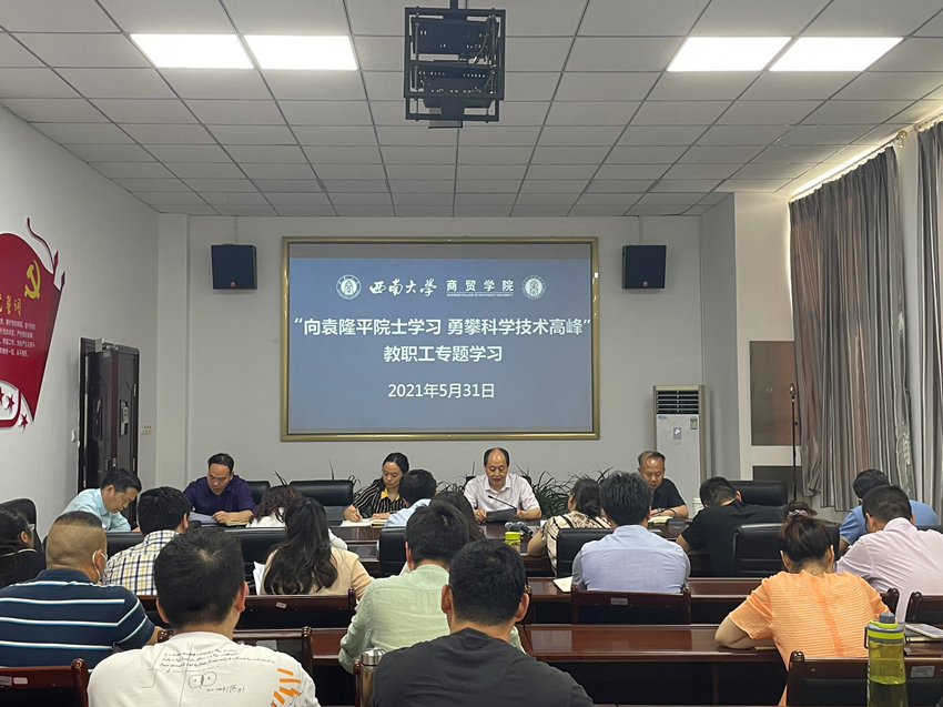 学习会由学院党委书记周国安主持。全体教职工认真学习了习近平对袁隆平同志的高度评价,以及追忆袁隆平同志的三篇文章——《稻田追梦的科学巨擘》《心系苍生的大地赤子》《终身求索的一代宗师》。通过学习,与会全体对袁隆平同志克服艰难险阻,一辈子脚踏实地,躬耕田野,以天下苍生的需要为己任的崇高精神有了更加详细的了解和认识,深深感动于袁隆平同志勇于创新、朴实无华的高贵品质。
