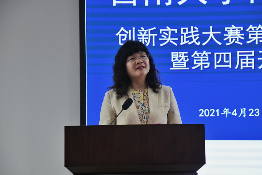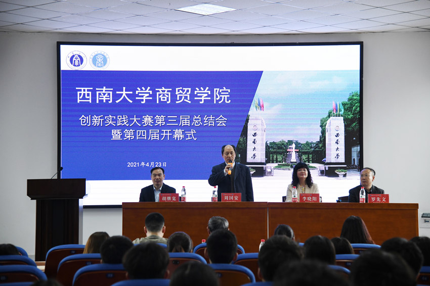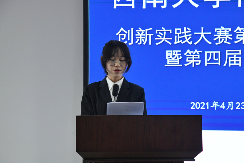 随后,胡继宽副院长宣读了第四届创新实践大赛开幕文件。商道双创第四届大学生创新实践大赛于2021年4月——12月举行。大赛面向yl6809永利集团大一至大三全体在校学生,共设有创新创业竞赛、市场营销竞赛、外贸单证岗位技能竞赛、公共关系行业最佳案例竞赛、物流设计竞赛、程序设计竞赛等六个项目。