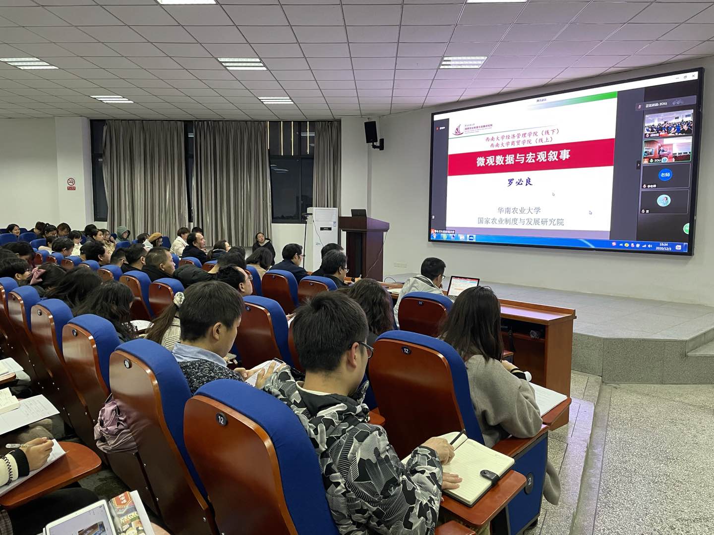 12月3日晚,yl6809永利集团举办线上学术讲坛,200余名师生通过“腾讯会议”线上参加了华南农业大学罗必良教授题为《微观数据与宏观叙事》的学术讲座。本次线上讲座由副院长胡继宽主持。