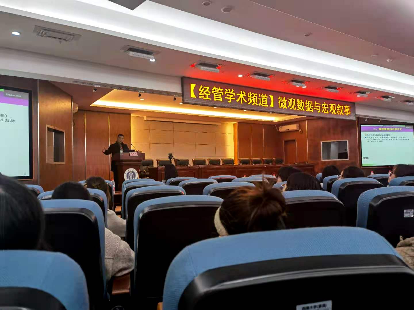 罗必良教授的报告以微观数据与宏观叙事为主题,从历史学的启迪、微观数据的宏观含义、微观数据的理论意蕴三个方面展开,结合具体研究课题阐述微观数据在科学研究中的运用与功能,为现场师生提供了生动的学术研究方法和思路的启迪。