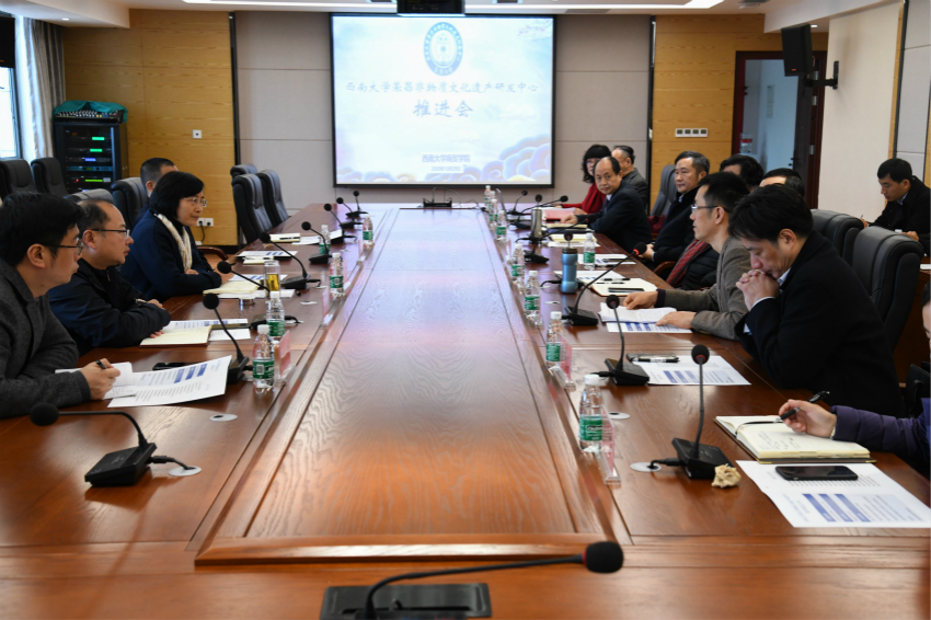 yl6809永利检测中心荣昌非物质文化遗产研发中心是通过教育部论证,由yl6809永利检测中心与荣昌区共同支持建设的文科实验室,yl6809永利集团负责具体建设和实施运行。会上,与会人员一同观看了中心的视频宣传短片,就推进中心建设、新文科教育改革实践和乡村振兴学院建设的具体思路和措施进行了充分研讨。