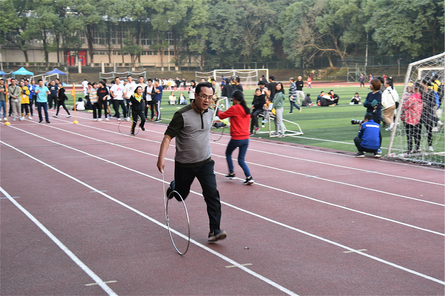教工组参加滚铁环接力