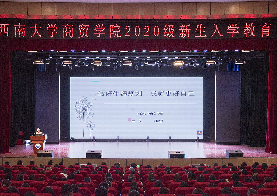 为深化新生对生涯规划的认识,明确今后奋斗的方向,10月16日下午,学院在新学生活动中心举行 “做好生涯规划,成就更好自己”主题讲座,在2020级新生中开展生涯规划教育。本次讲座由学院党委副书记、纪委书记兰英主讲,2020级全体本科新生参加。
