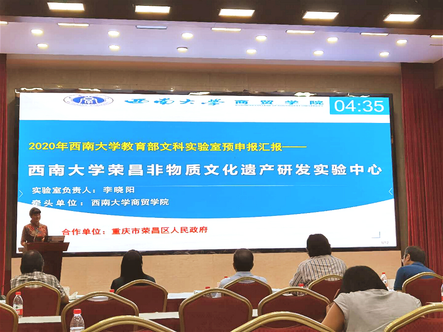 根据“教育部拟于今年启动高校文科实验室建设和重点研究基地动态评估,重点支持建设一批文科实验室”的精神,学院申报的“yl6809永利检测中心荣昌非物质文化遗产研发实验中心”教育部文科实验室论证会于2020年7月16日在学校东方红会议厅进行。学院党委高度重视,党委书记周国安副教授亲自带队,新文科实验室负责人、副院长(主持工作)李晓阳教授、副院长罗先文副教授、院长助理沈忠明副教授和庞新军老师等参加了论证会。