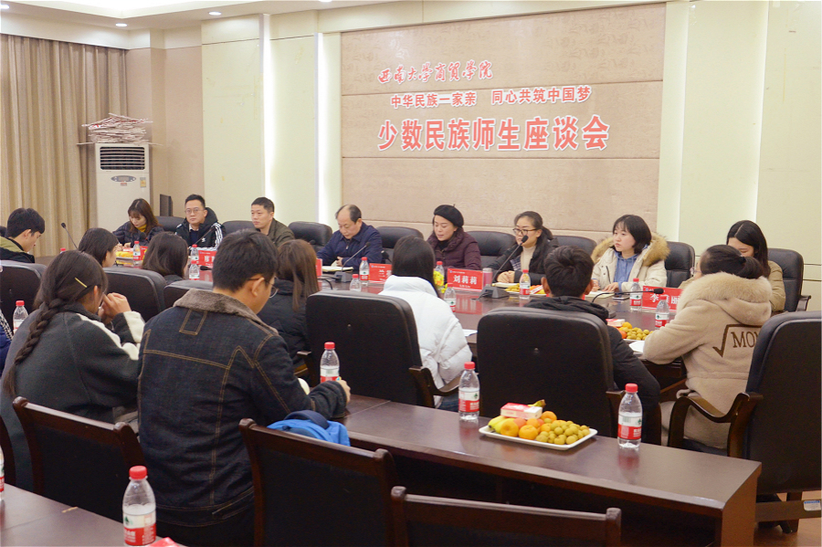12月2日下午,学院首次少数民族师生座谈会在2309会议室举行,会议以“中华民族一家亲,同心共筑中国梦”为主题,少数民族师生30余名代表参会。学院党委书记周国安、全体辅导员出席了本次座谈会。会议由学院党委副书记、纪委书记兰英主持。