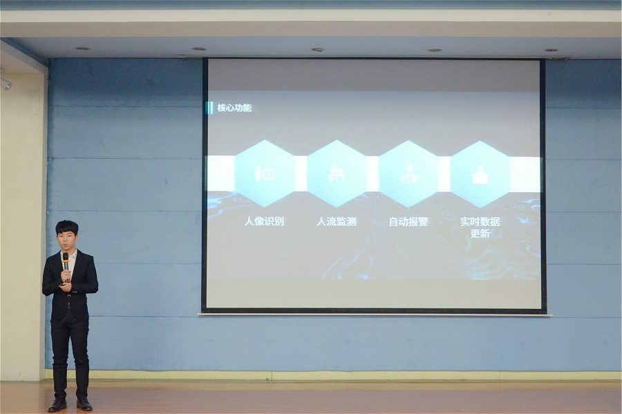 率先出场的source code队伍展示了公共场合人流量预警系统,发言人现场简述了软件开发过程以及实际操作方法;control victory队的参赛作品为基于树莓派的人流量监控系统,团队主讲人介绍了软件的操作原理并现场演示软件的运行过程;非诚勿扰队的软件生动形象地介绍了基于ios客户端的公共场合人流量预警系统,从研发调查、数据收集、数据分析、成果展示等方面对参赛软件进行了展示。