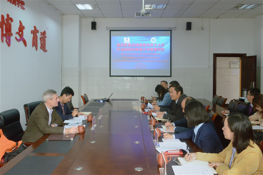 布拉德副校长在洽谈会上介绍了密苏里州立大学的基本情况。他介绍到,密苏里州立大学(MissouriState University)创建于1905年,位于密苏里州斯普林菲尔德市,是一所享有盛誉的美国高校,在全国及地区的商业、政治和教育事务中发挥着重要作用。密苏里州立大学商学院是该校规模最大的学院,也是美国中西部临近八州规模最大的商学院,在校学生人数有5000余人。同时,商学院也是该校最具优势的学院,获得了国际商学院协会认证。他非常愿意做好双方商学院合作人才培养的桥梁。