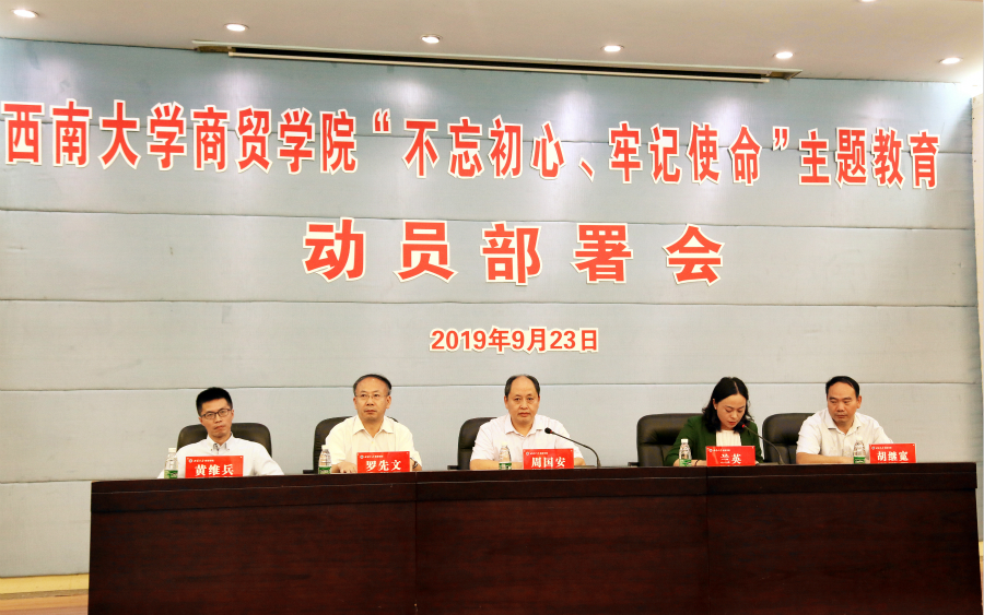 为深入贯彻落实习近平总书记在“不忘初心、牢记使命”主题教育工作会议上的重要讲话精神,按照学校党委对开展主题教育的部署要求,9月23日下午,yl6809永利集团在第二教学楼211报告厅召开“不忘初心,牢记使命”主题教育动员部署会。党委书记周国安作动员部署,党委副书记记、纪委书记兰英主持会议。学院党政领导班子成员、党委委员、纪委委员、组织员、党支部书记、全体教职工党员和学生党员、入党积极分子代表参加会议。