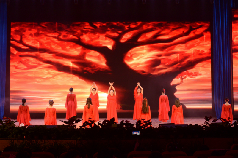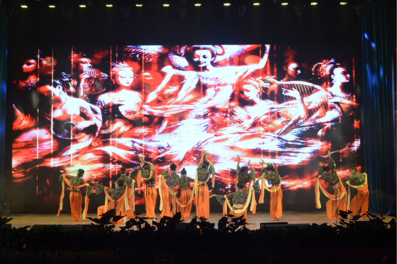 学院教职工选送的舞蹈节目拉开了晚会序幕,在《火了火了火》欢快的音乐声中,老师们走下讲台融入学生,用动感的舞步展现他们的活力四射;舞蹈《致青春》回忆那些年的青葱岁月,品味年少时的美好;歌曲《我们都是追梦人》描绘出中国梦的宏大壮阔,激昂追梦赤子心;霓裳曳广带,飘拂升天行,一舞《敦煌·乐天》清颜古衫,青丝墨染若灵若仙地重现了丝绸之路上驼铃铛铛的千年回眸,将晚会气氛推向了高潮。晚会节目精彩纷呈,现场高潮迭起,展现出商贸师生的时代风貌,这既是奉献给祖国的赞歌,也是展现商贸人勇毅前行的时代旋律。