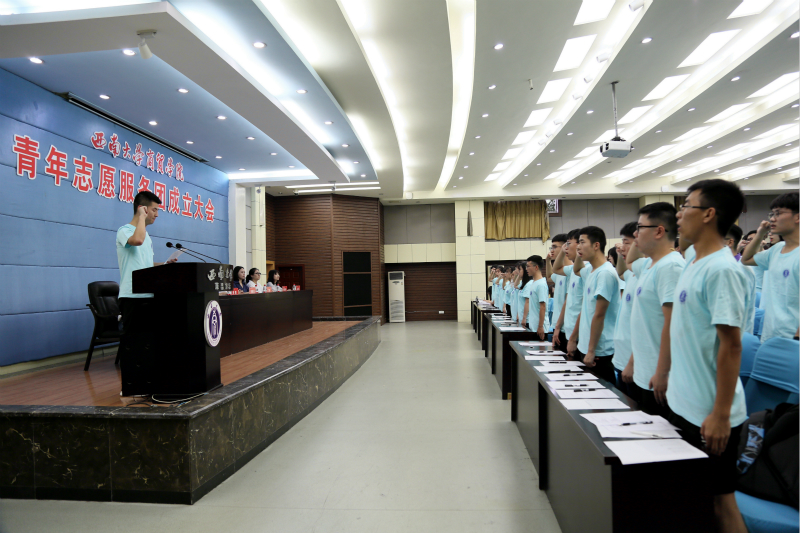 最后全体志愿者庄严宣誓,投身志愿服务工作,弘扬、传播志愿者服务理念,增强学生的服务奉献精神,为推进学院精神文明建设做出积极贡献。