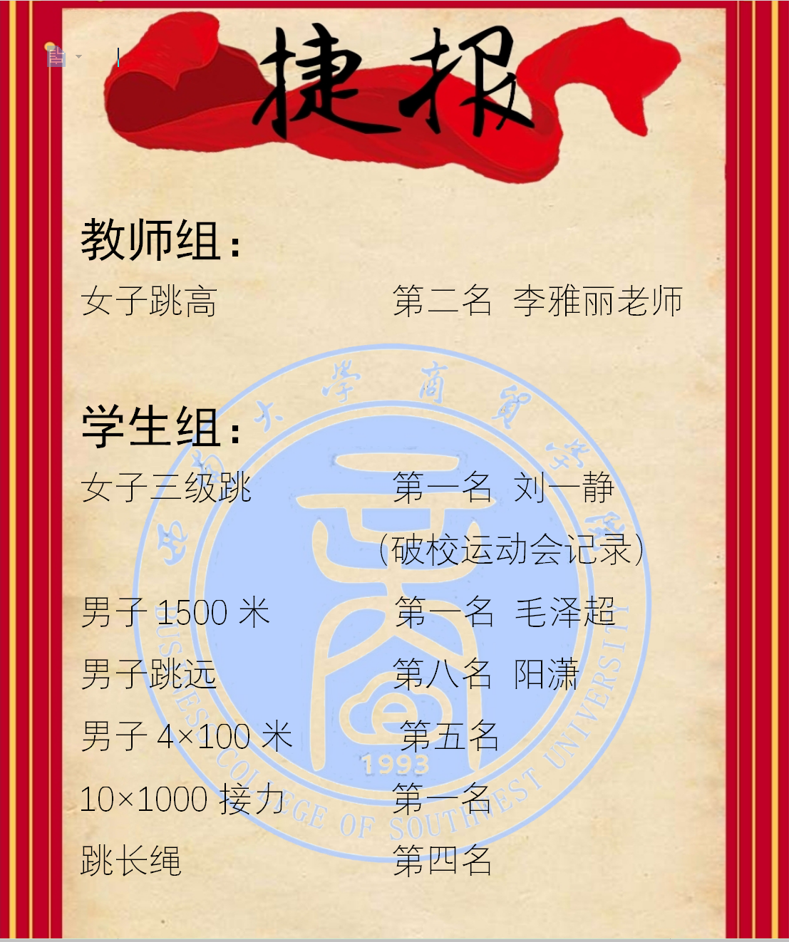 本届校运会4月19日yl6809永利集团学生获奖情况如下: