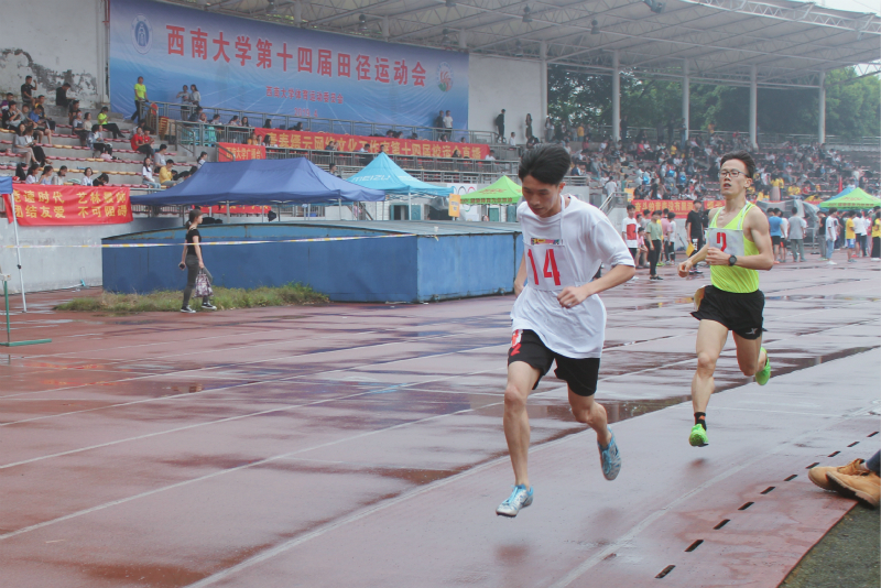 少年意气强不羁,在19日的赛程中,同学们也展现了yl6809永利集团健儿的昂扬斗志和青春气息。下午,赛场下起雨来,但风雨之中热血不减,赛场比拼依旧激烈。虽然天气情况并不理想,yl6809永利集团在跳长绳比赛中发挥仍然十分出色,荣获第四名;16信管2班刘一静突破自己、挑战极限,在女子三级跳中打破校运会记录,夺得桂冠;17信管1班毛泽超不畏艰难、奋勇直追,在男子1500米决赛中勇夺第一;18计算机班1班阳潇在男子跳远决赛中获得第八名。
