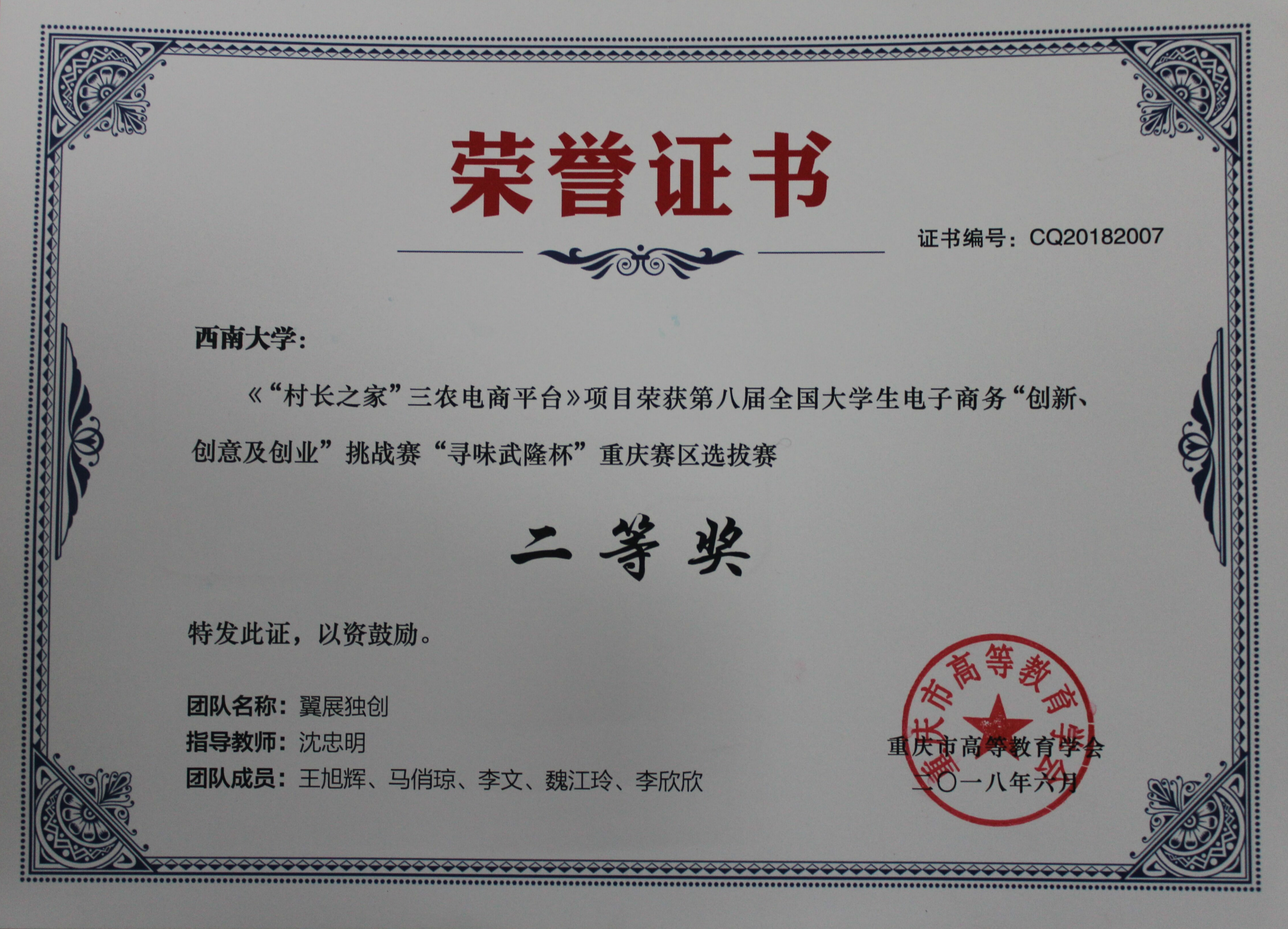 学院2017年成立,一年多来始终高度重视创新创业工作,整体偏向电子商务服务类的创新创业方向。2017年,“V艺”公益项目获得第三届中国“互联网+”大赛重庆金奖;2018年“香帝缘MCN”项目获得第四届中国“互联网+”大赛重庆金奖;“村长之家三农电商平台”获得第八届全国大学生电子商务“创新创意及创业”大赛重庆二等奖;“互联网优质内容服务商”项目荣获“创青春”大学生创业实践挑战赛铜奖。