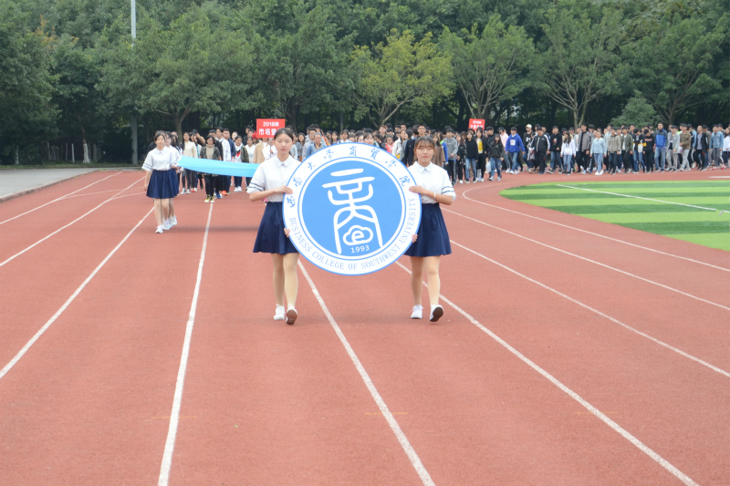 开幕式上首先进行的是精彩的入场式,运动员代表方阵以整齐划一的步伐和挺立的身姿展现了商贸学子的青春朝气。