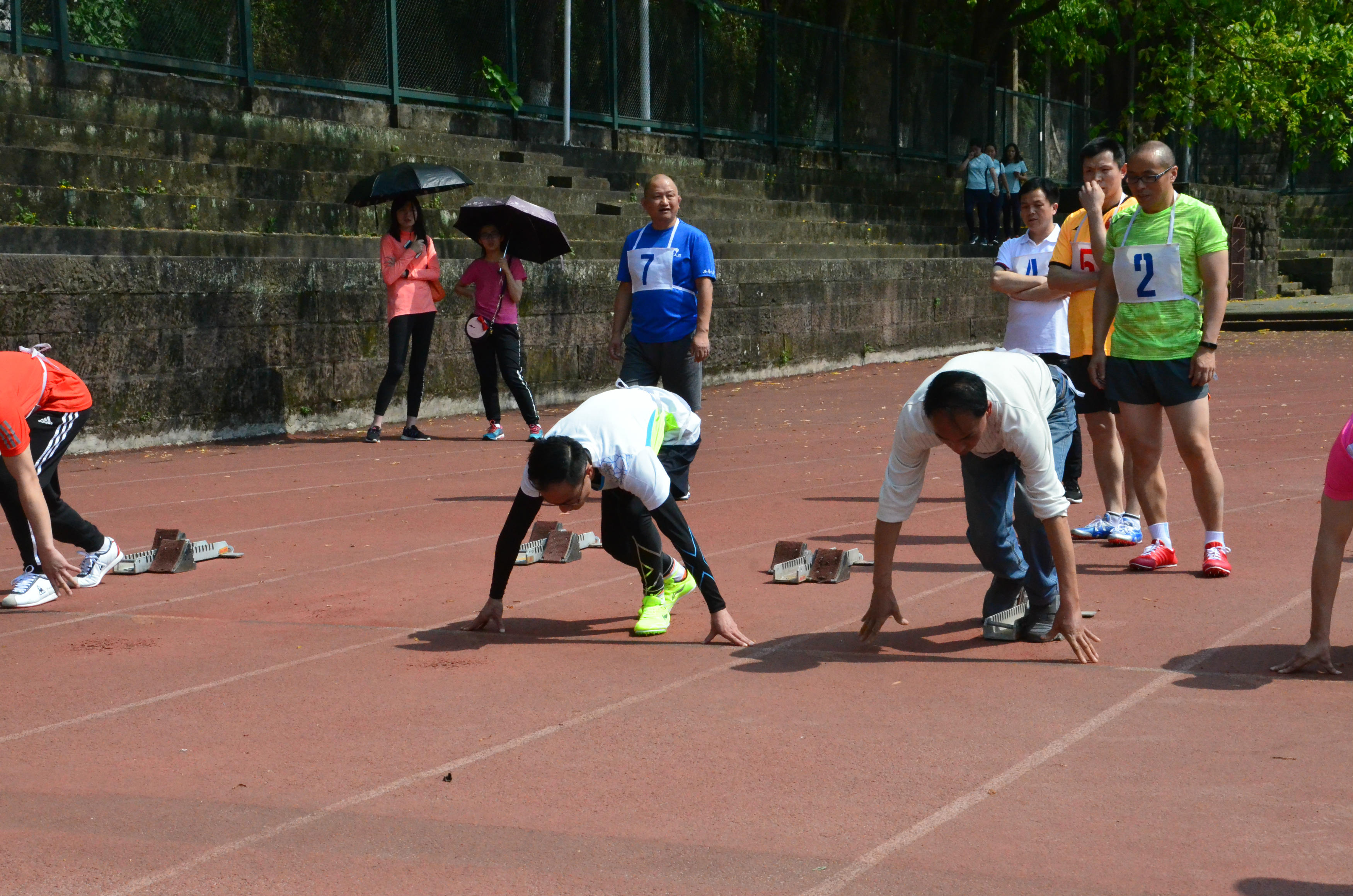 余军老师参加男子乙组100米