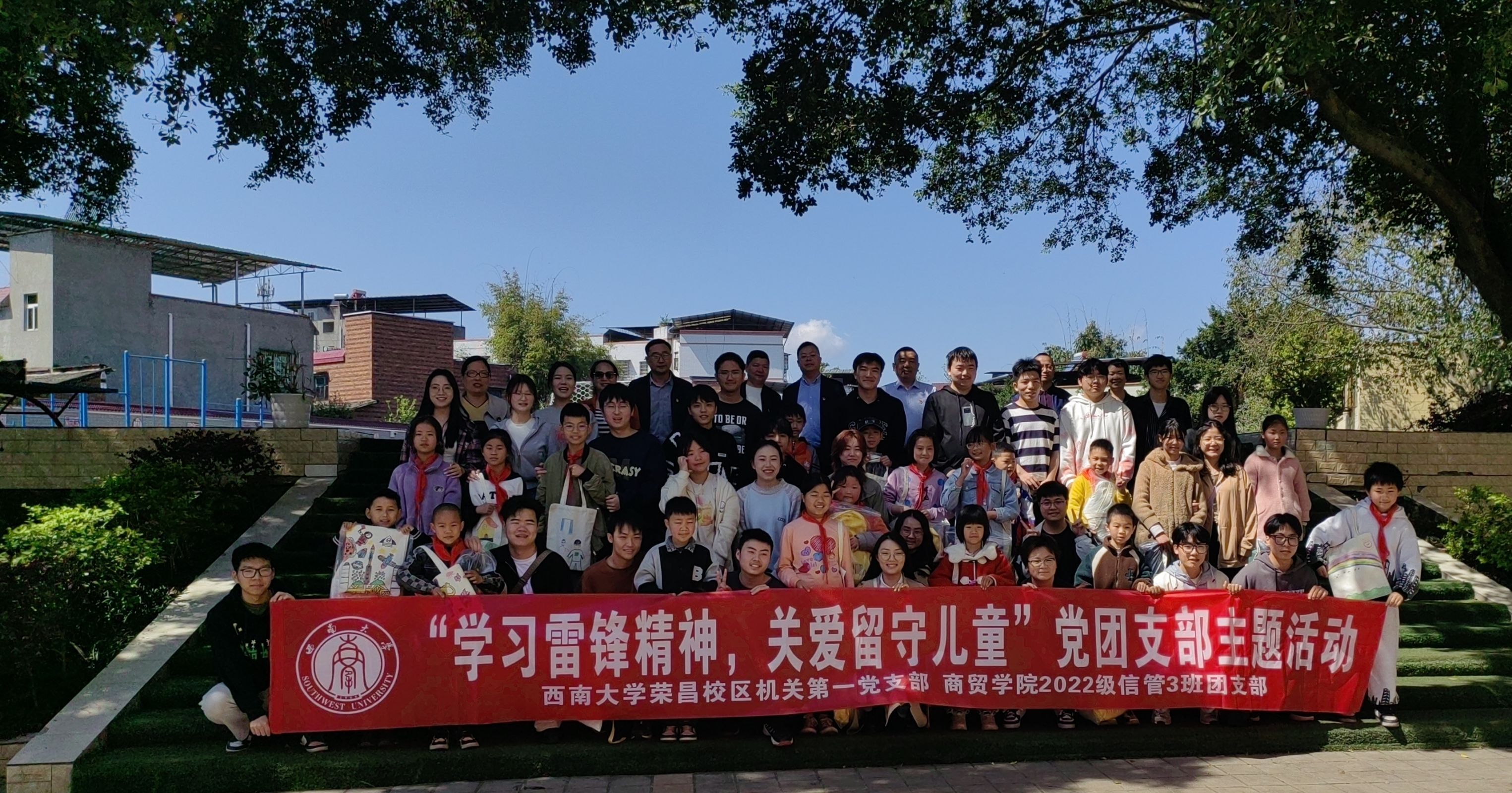 2024年3月5日是第61个学雷锋纪念日,为学习贯彻习近平总书记关于弘扬雷锋精神的一系列重要论述,引导团员和青年在社会实践和志愿服务中积极奉献。学院2022级信息管理与信息系统3班全体同学在荣昌校区机关第一党支部的带领下,前往荣昌区双河街道金佛中心小学开展“学习雷锋精神,关爱留守儿童”志愿服务。
