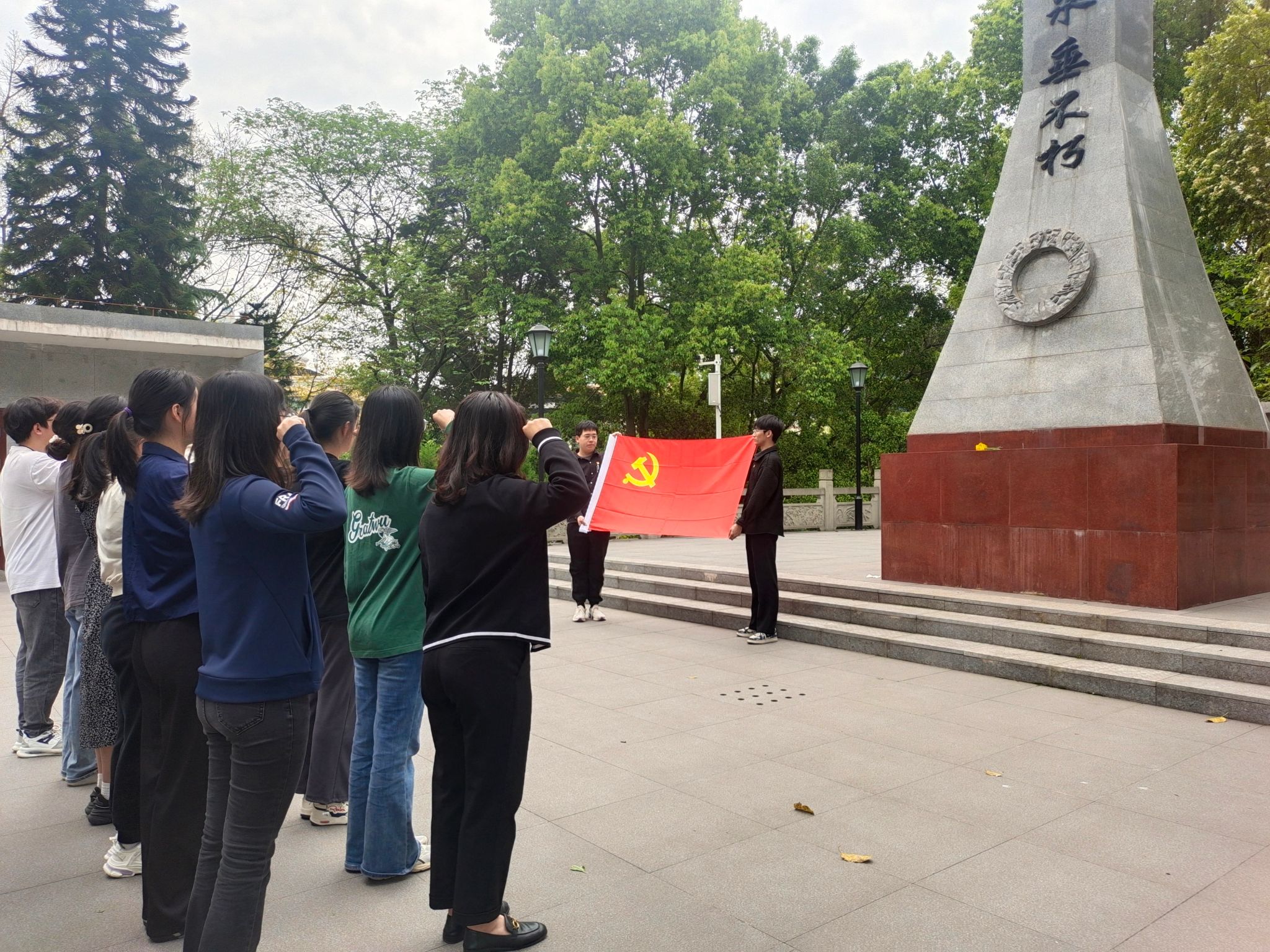 活动伊始,师生党员们在英雄纪念碑前整齐列队,肃立默哀,共同缅怀革命先烈,现场肃静庄严,深深地沉浸在哀思之中。默哀毕,党员们神情肃穆,依次向烈士墓敬献鲜花,表达对革命先烈深切的哀思和崇高敬意。最后,全体党员重温入党誓词,进一步坚定理想信念。