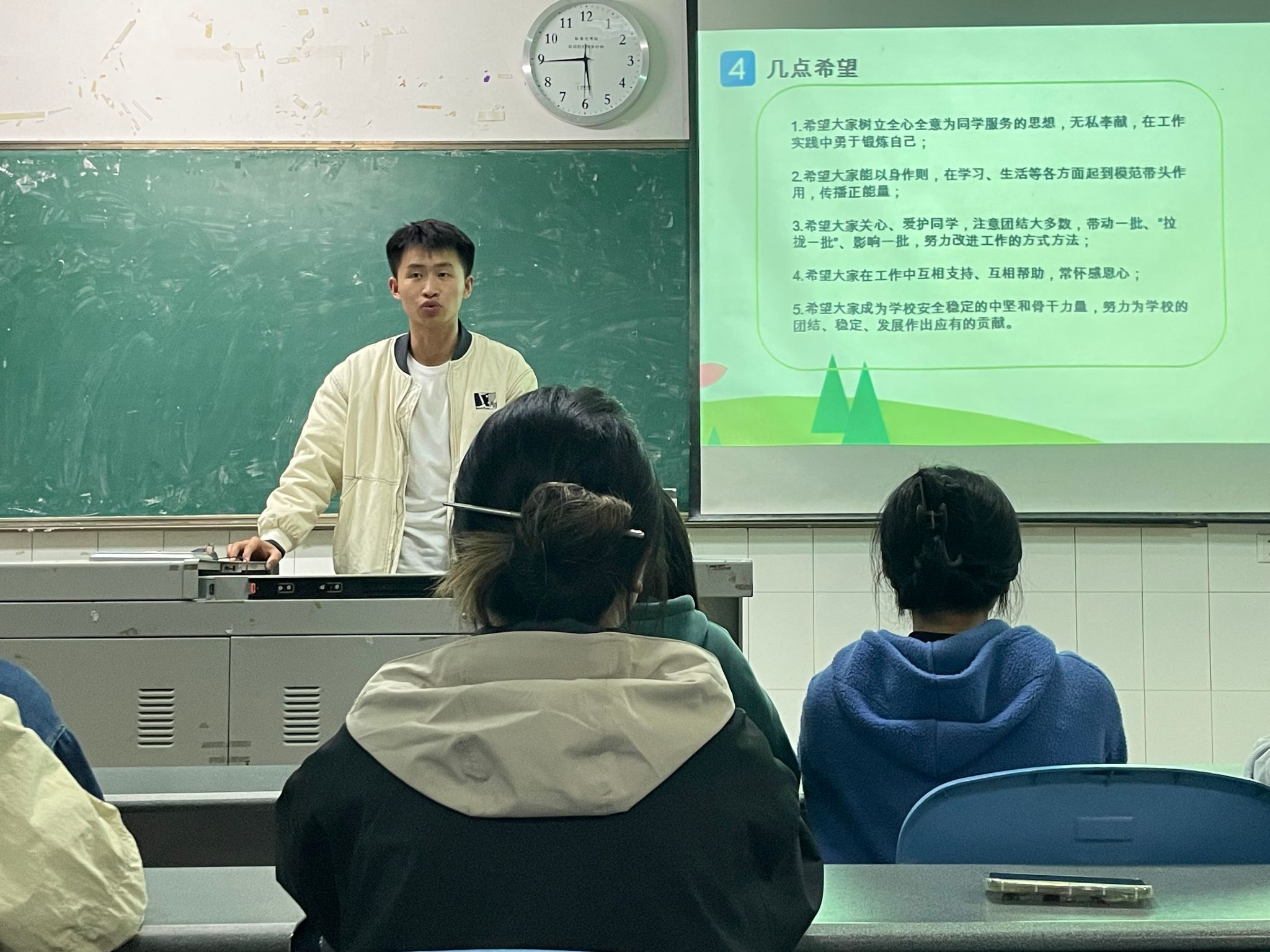 学风建设研讨交流会上,辅导员陆亮兵就做好学委工作、培育优良学风做了分享交流,鼓励学委要增强主动意识,发挥领航员作用,用自身行动影响、带动班级同学热爱学习、主动学习。随后,各班学习委员就本班学风建设情况进行讨论交流,提出以班委团队为龙头,建立学风激励机制,成立朋辈互助小组,帮助班级同学端正学习态度,改进学习方法、提高学习效果。