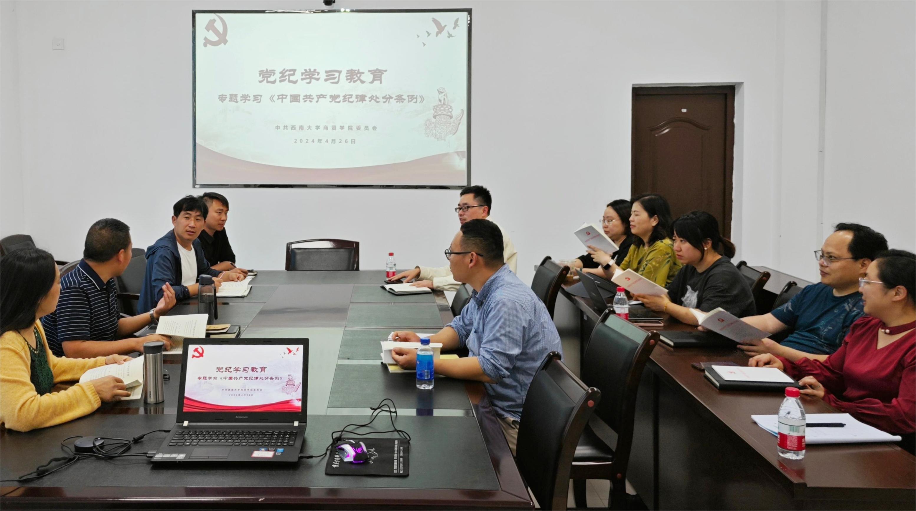 yl6809永利集团党纪学习教育启动以来,yl6809永利集团党委坚持把“严”和“实”的作风贯穿始终,以高度的政治自觉切实扛起开展党纪学习教育的政治责任,以党委理论学习中心组学习、读书班为领航,统筹学院教职工政治理论学习,对学院师生党支部进行全覆盖、全过程指导。同时,将开展党纪学习教育与巩固拓展学习贯彻习近平新时代中国特色社会主义思想主题教育成果衔接起来,切实把党纪学习教育成效转化为推动学院事业高质量发展的强大动力,推动学院高质量发展。