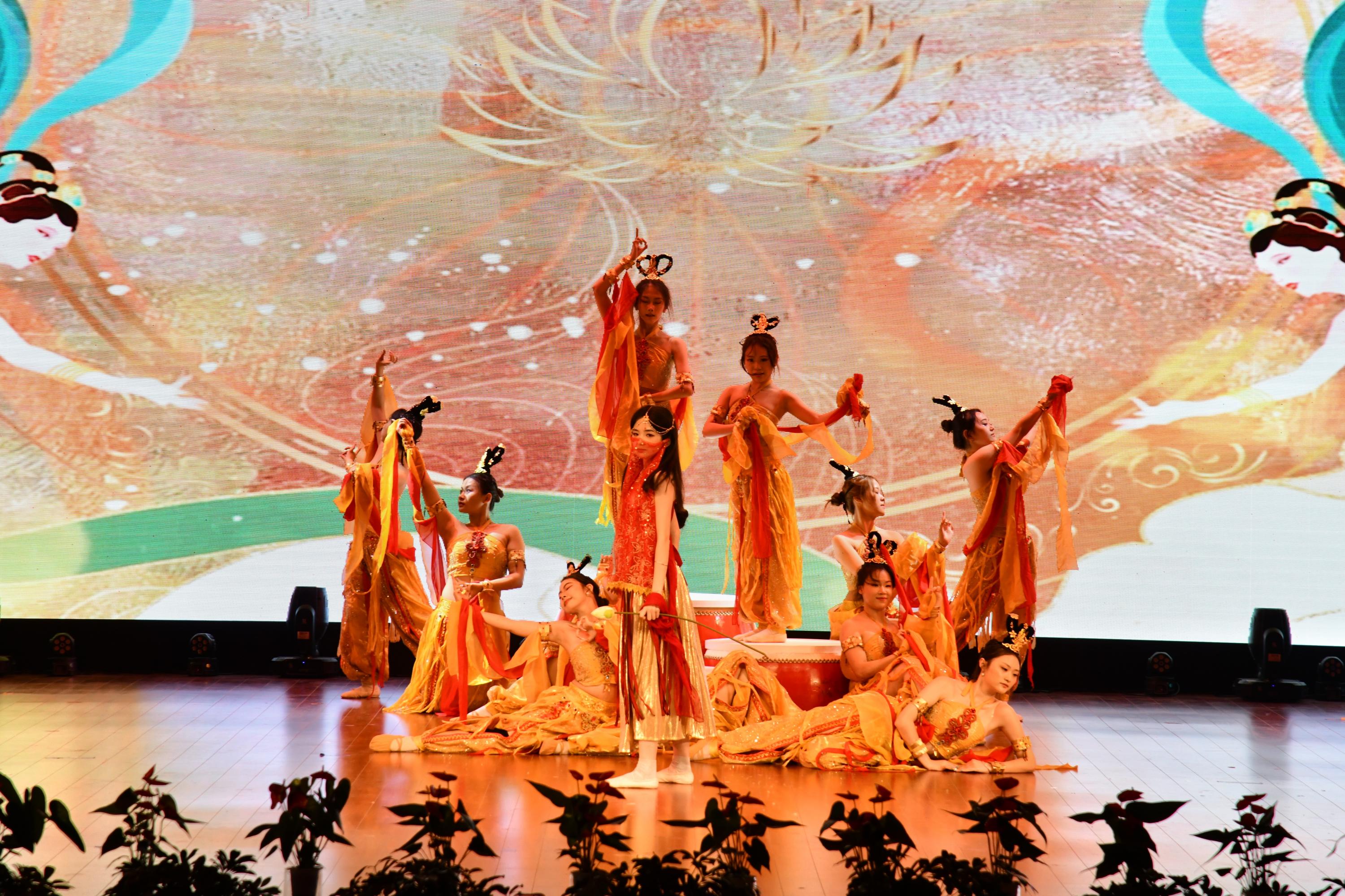 民族舞、爵士舞、街舞、现代舞、敦煌舞、歌伴舞、走秀式舞蹈、诗朗诵、武术等不同种类节目异彩纷呈,既让观众感受了国泰民安、岁月静好,又让大家在身临其境感受异域风情,还带领全场畅游青春之旅,一同展望祖国一片光明未来。
