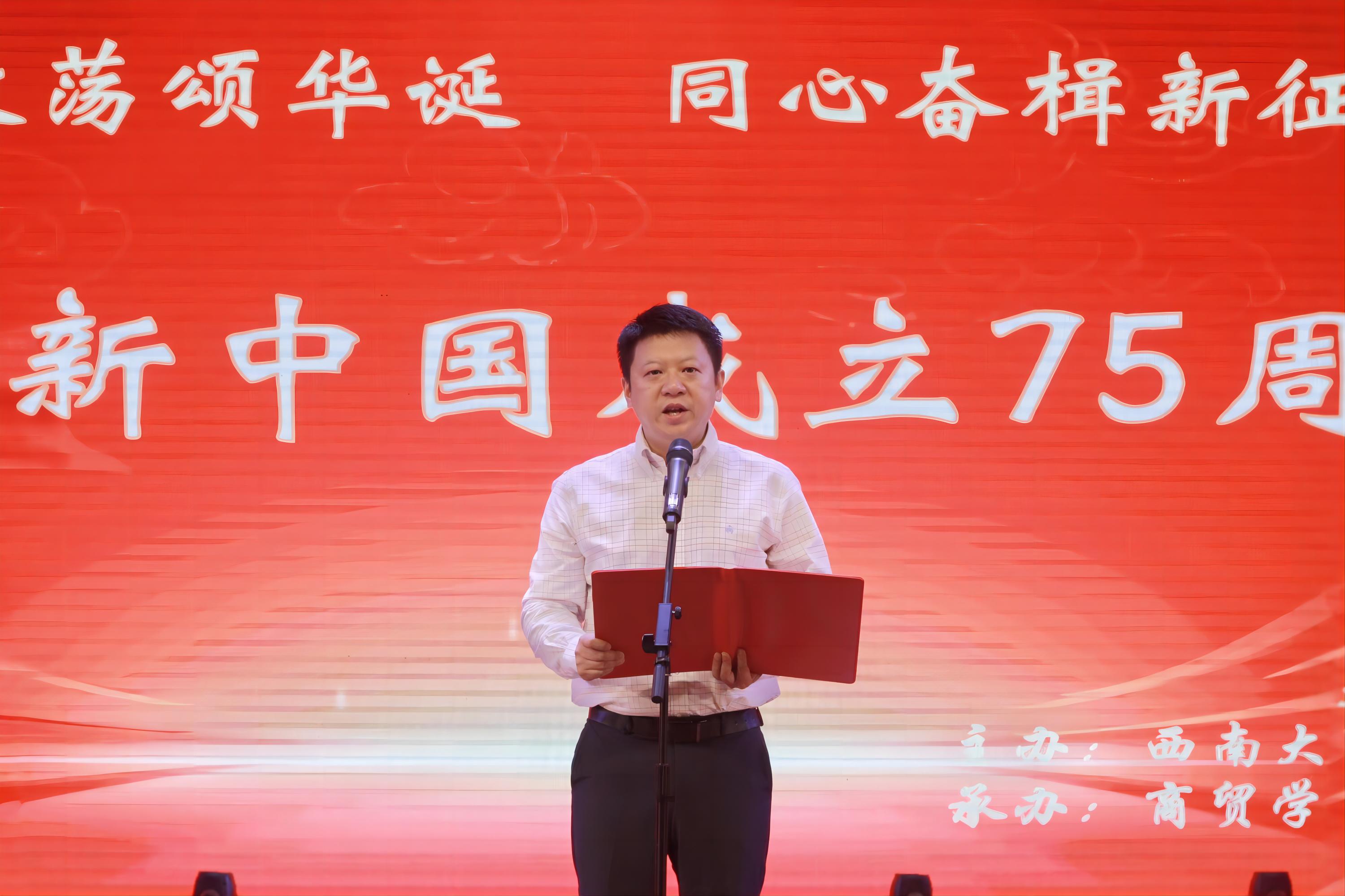 学院党委书记王熹在致辞中强调,今年是新中国成立75周年,也是全面贯彻落实党的二十大的关键之年,学院始终围绕“立德树人”根本任务,在办学方向、人才引进、学科专业建设、科学研究、人才培养等方面大步迈进。王书记表示,学院的发展离不开每一位商贸人的努力,希望全体师生团结一心,聚智创新,务实笃行,共同成就商贸新精彩、谱写商贸新华章、实现商贸新跨越!