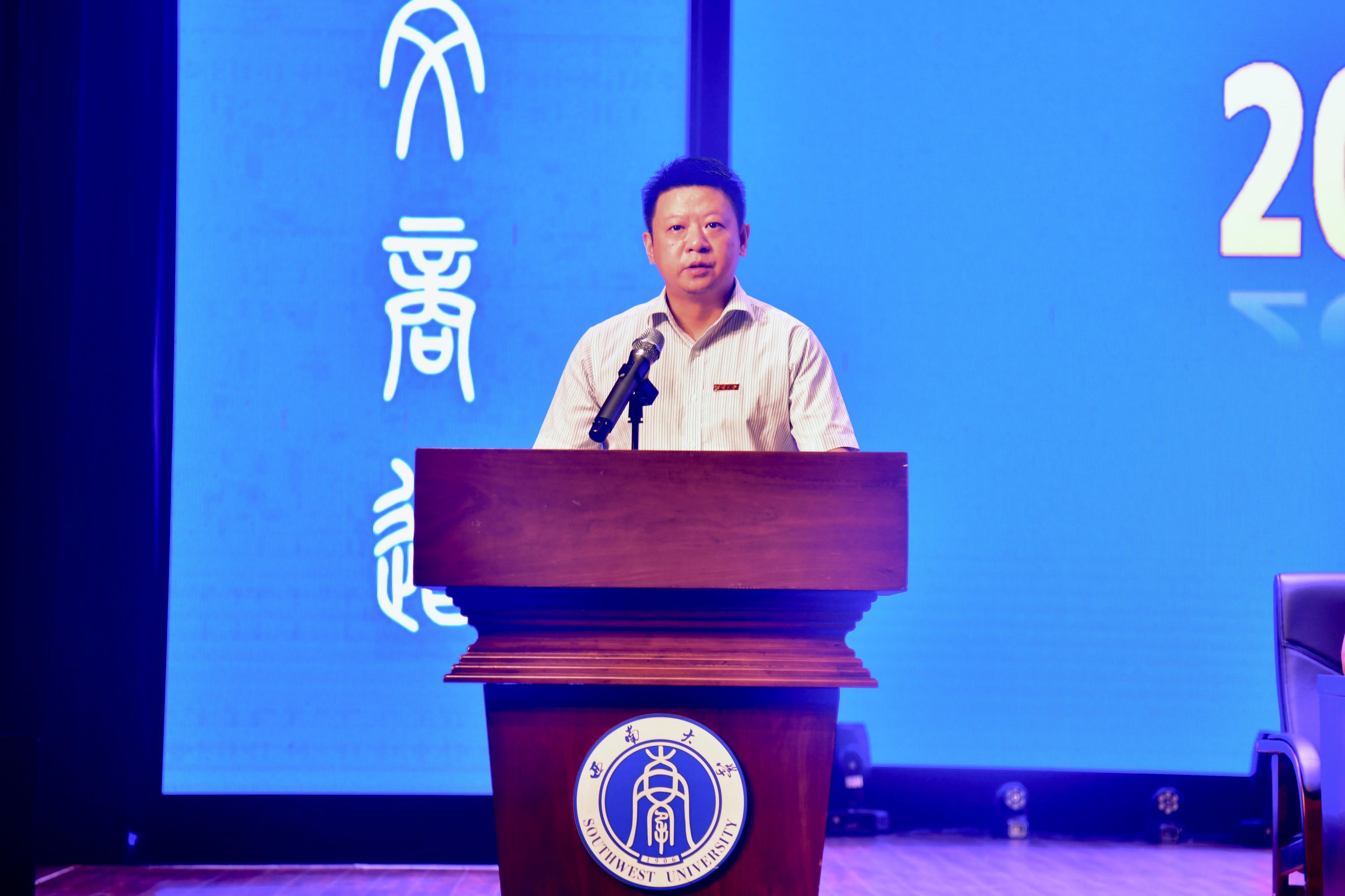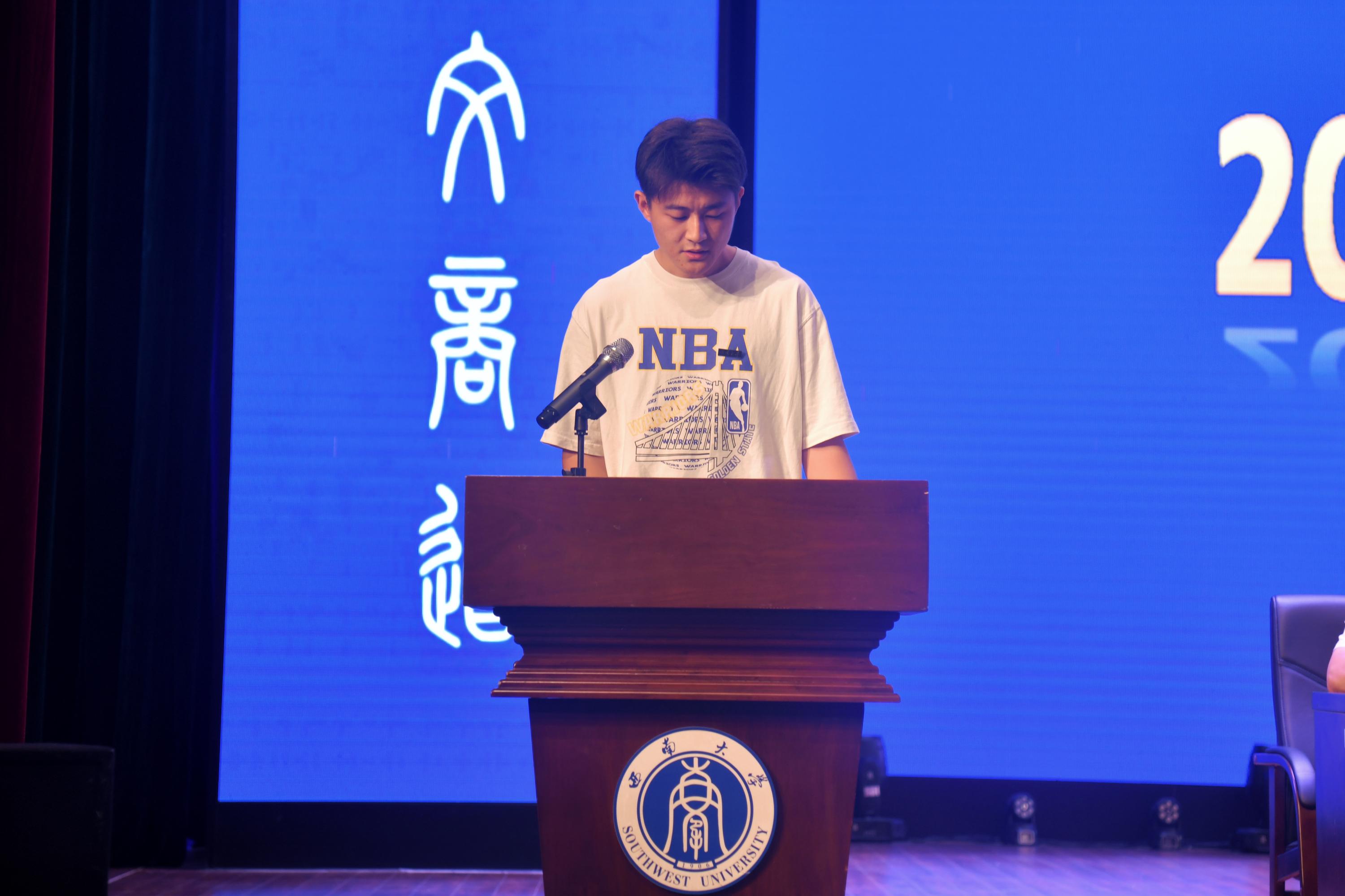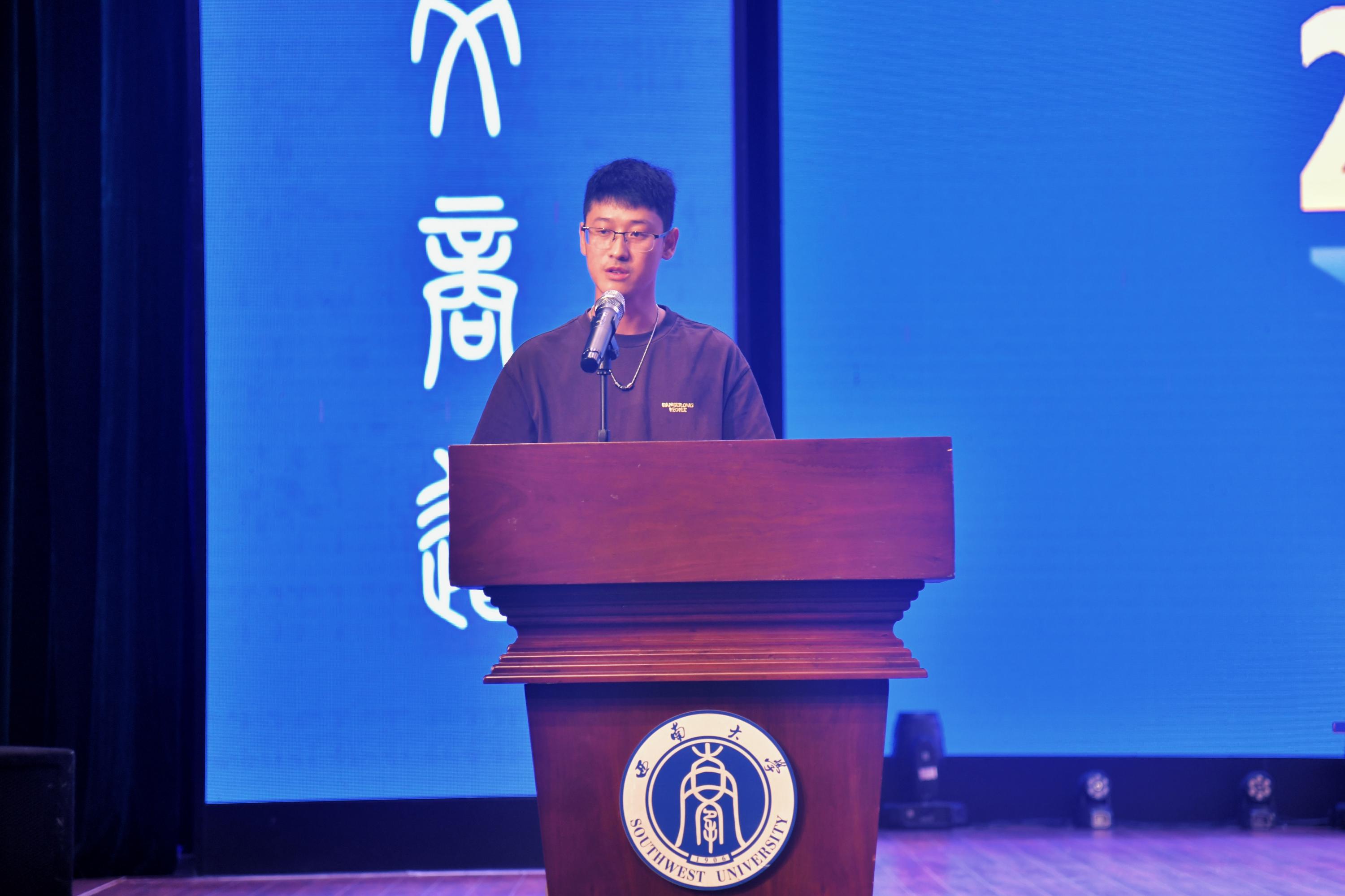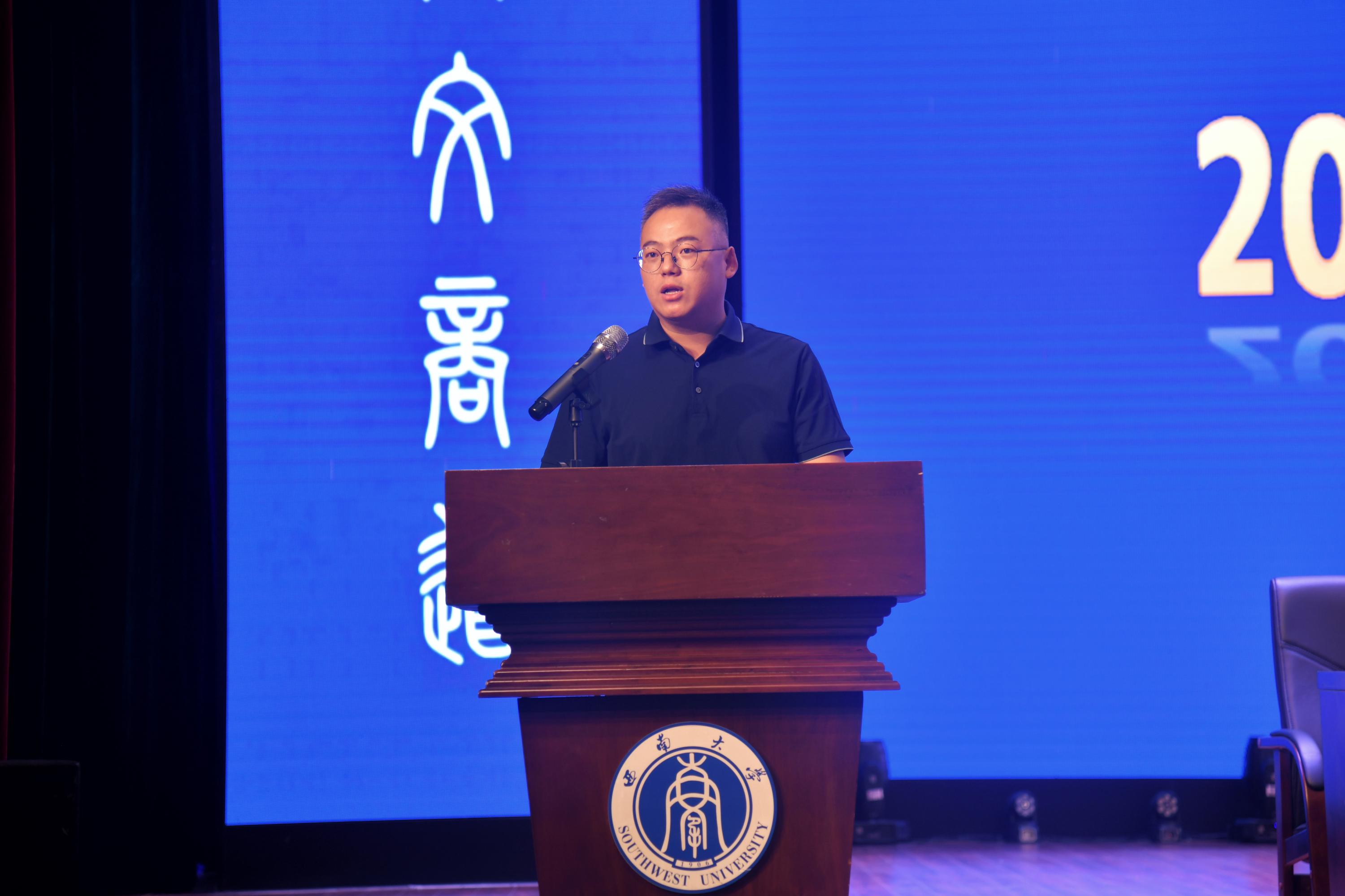 校友李朝阳给学弟学妹们分享了自己的求学、创业经历,鼓励大家抓住青春年华,尽早找准人生赛道。老生代表杨雨洁向学弟学妹分享了三年的大学历程,将其总结为两个关键点,即为“善于发现的眼睛和行动力满满的手”。研究生新生代表杨恒轩和本科新生代表王欣诺在发言中表达了与西大结缘的喜悦,他们呼吁全体新生“走好第一步”,立足当下,努力做到“真学、真懂、真用”,在yl6809永利集团遇见更加优秀的自己。教师代表周佳宁以“故乡、梦想、远方”关键词,鼓励新生享受当下(夏)、珍惜当下(夏)、用好当下(夏)。