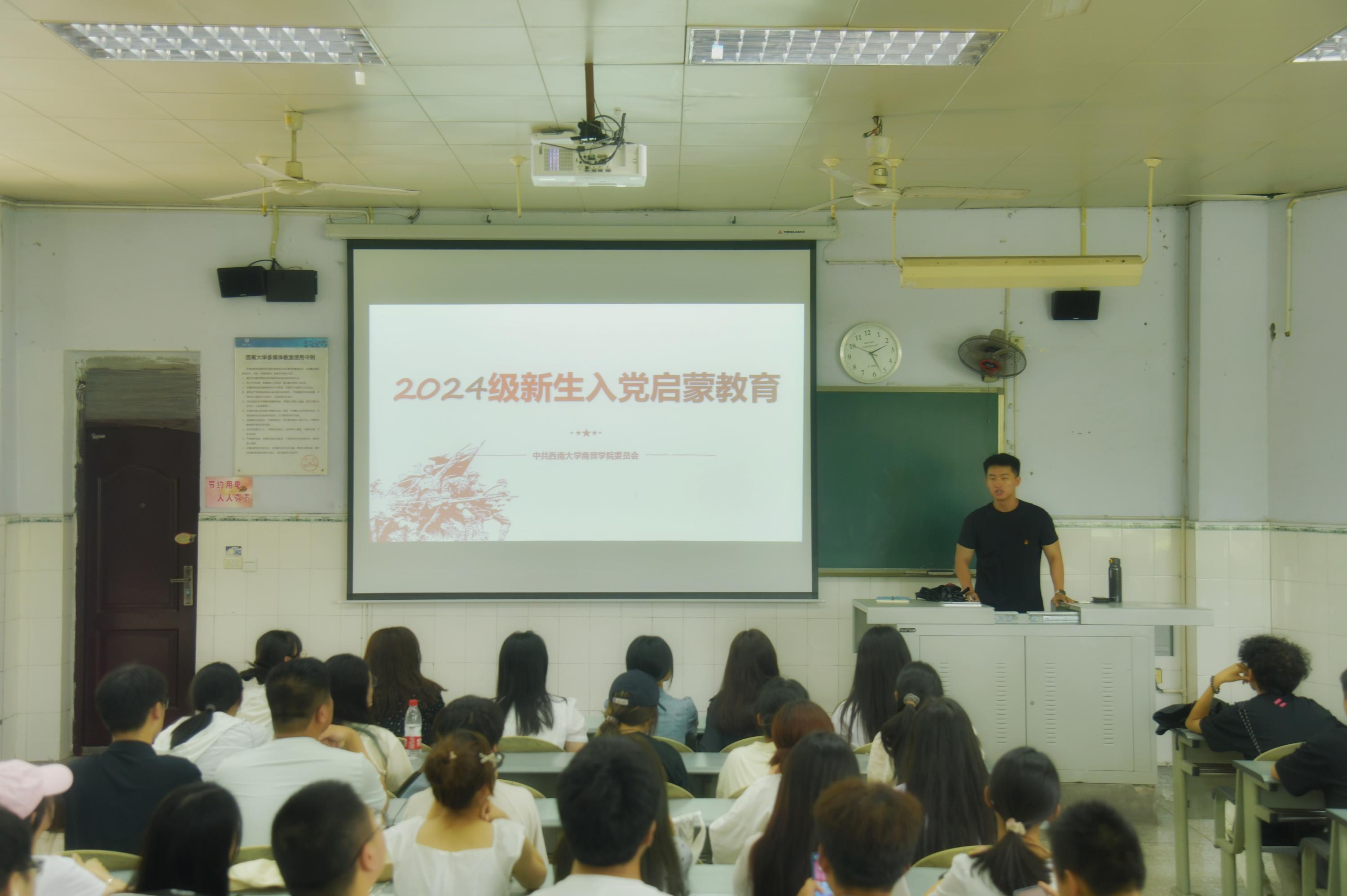 9月11日下午,学院各学生党支部书记分别为2024级全体新生开展入党启蒙教育。各党支部书记从中国共产党基础知识、新时代大学生为什么要加入中国共产党、新时代大学生如何加入中国共产党等三个方面引导新同学了解党的历史和使命,树立正确的入党动机。随后,各支部书记向新生介绍了发展党员的要求与原则,如何撰写入党申请书,并详细讲解了入党流程。