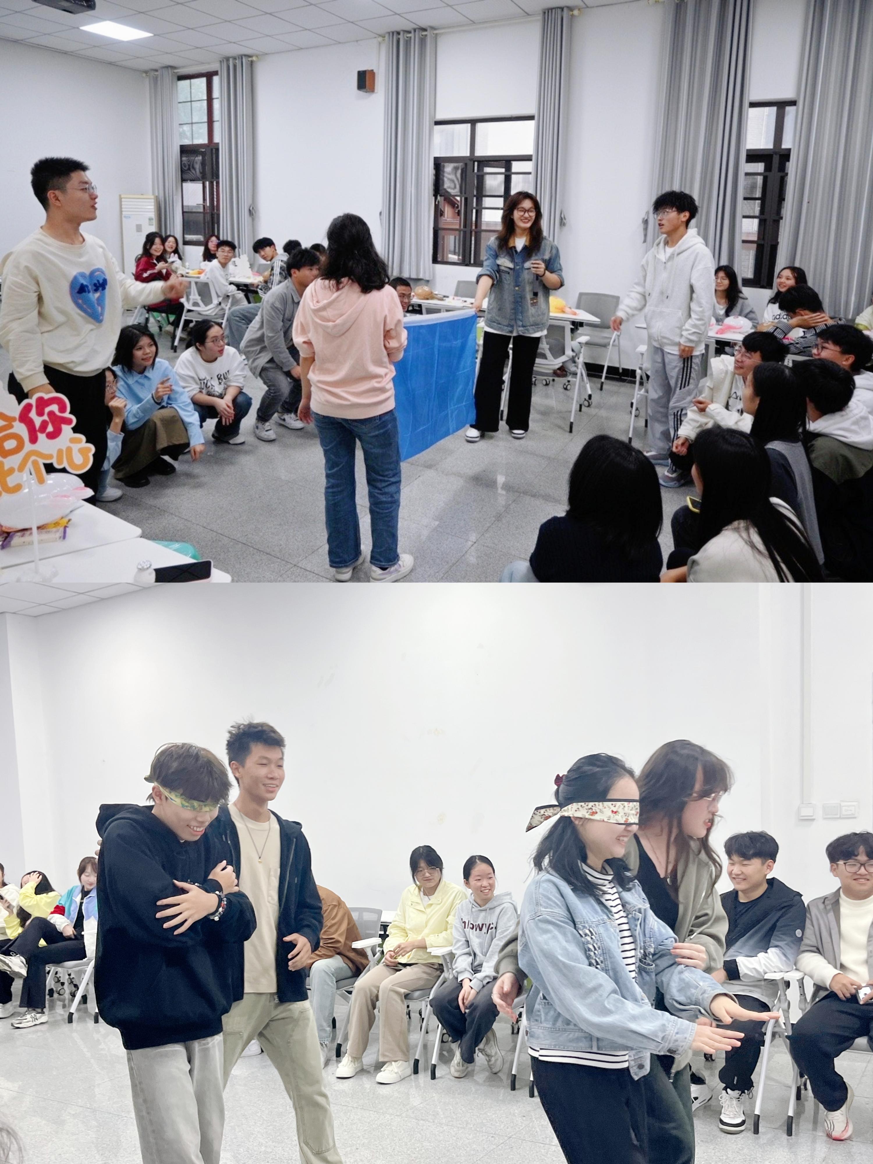 随后,各班级同学随机抽签分成若干小组,每组需要共同完成一系列集趣味性、协作性和竞争性于一体的小游戏,比如心有千千结、纸杯接力、击鼓传花、猜歌识曲、你比我猜、“缘”来是你、合作运物、数字炸弹等。活动中,同学们不仅表现出了突出的创造力和敏锐力,也展现出了团结合作与锲而不舍的毅力。