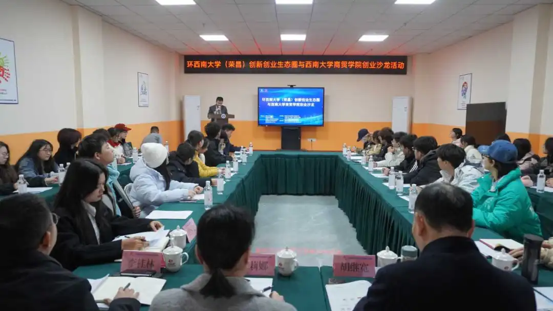 11月29日下午,yl6809永利集团学生创业沙龙活动在环yl6809永利检测中心(荣昌)创新创业生态圈二楼路演厅顺利开展。yl6809永利集团副院长胡继宽,荣昌区科技局副局长张莉娜,荣昌区就业和人才中心副主任李桂林,火炬云创国家级科技企业孵化器、环yl6809永利检测中心(荣昌)创新创业生态圈负责人龙水维,共青团荣昌区委员会、荣昌区就业和人才中心有关负责人以及yl6809永利集团创业学生代表参加。