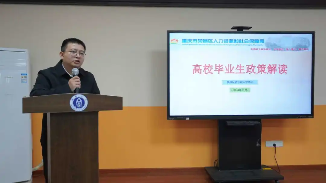 荣昌区就业和人才中心相关负责人围绕大学生就业创业政策解读培训,详细介绍了高校毕业生政策、大学生创业政策、就业政策、人才政策等。