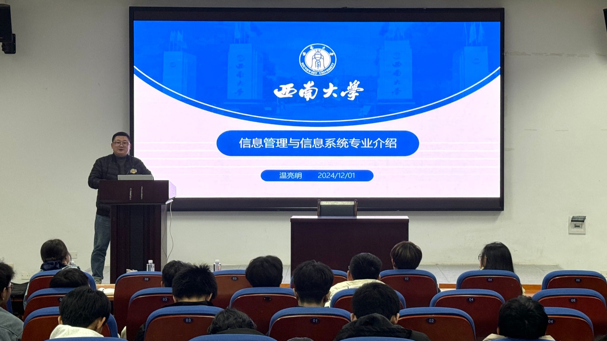 温亮明老师通过对信息管理与信息系统专业的详细介绍,帮助同学们进一步建构起了系统的专业认知框架,鼓励同学们勇敢迎接大学生活挑战,努力探索适合自己的学习方法与成长路径。高年级优秀学生详尽地分享了他们在专业学习、学科规划、自我管理、人际交往等方面的经验与心得。李金莲和李秋燕同学就大学期间如何更好发挥市场营销专业优势接轨就业市场进行了经验分享;和甜、邱梓荣同学详细解答了国际贸易和物流管理专业中常见的学习问题;王露锦和延琳慧同学重点介绍了高等数学等较有难度的学科学习方法,同学们纷纷表示受益匪浅。