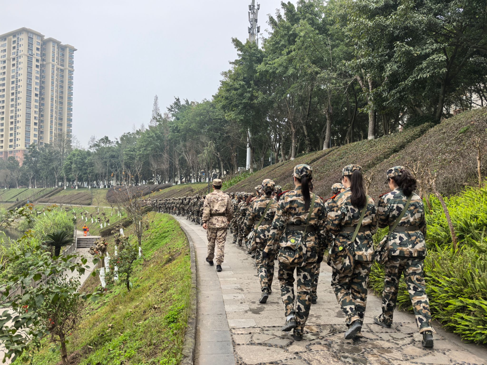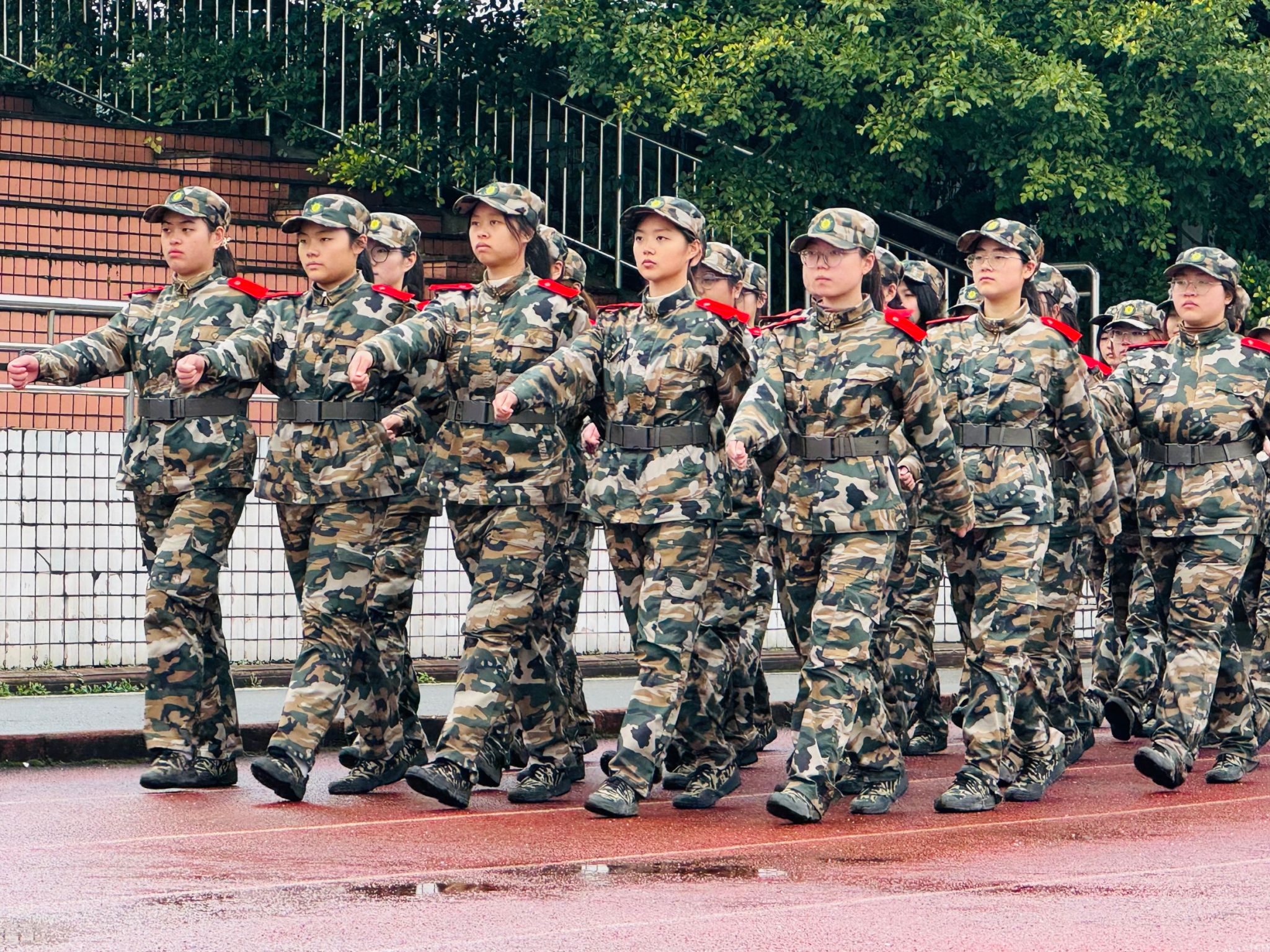此次军训共计14天,学院共有562名参训学生,分属5团10营37连,共设8个排。军训内容丰富而全面,涵盖了三大步法、停止间转法、军体拳、擒拿格斗、队列汇操等项目。学院严格落实学校军训安排,协同承训教官组织开展了军训动员大会、军训拉练、日常训练、军训总结、后勤服务等工作。