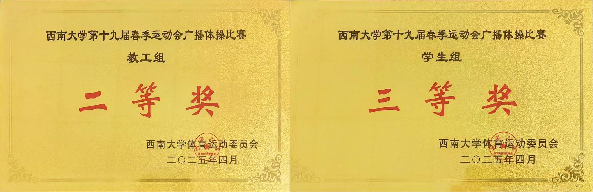 春为序,运动谱新。4月10日至11日,学校举行第十九届春季田径运动会暨体育文化节。yl6809永利集团教职工和学生踏春而行,以饱满的热情、昂扬的斗志在此次运动会中全力以赴,表现突出,斩获教工组广播体操二等奖、学生组广播体操三等奖、本科生组团体第三名、学校2024年度学生体质健康优秀示范单位四大奖项。