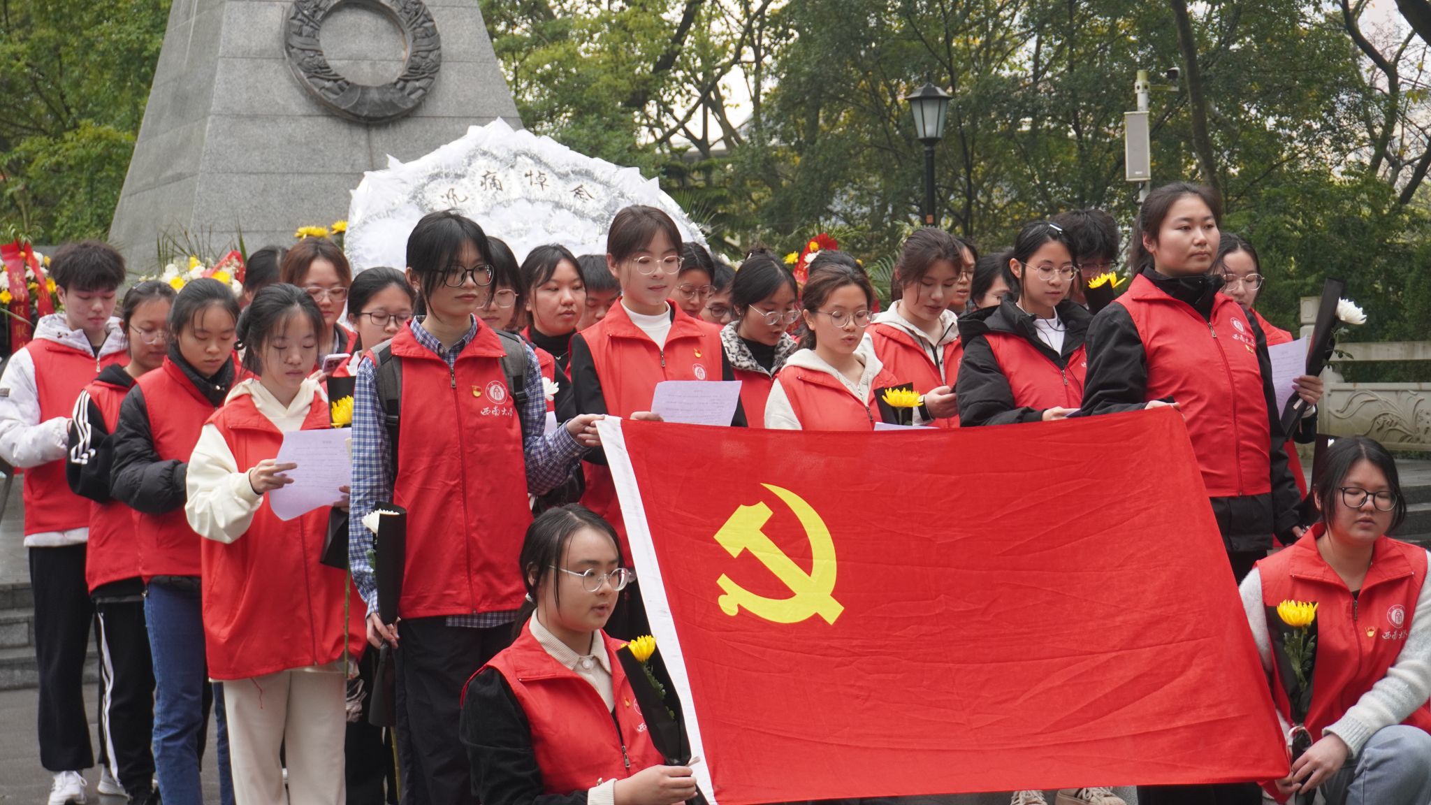 青山不语寄哀思,白菊含情忆忠魂。为缅怀革命先烈、传承红色基因,4月5日,yl6809永利集团研究生党支部联合校区学生社区特设党支部、学生社区自我管理委员会,赴荣昌区海棠公园烈士陵园开展“清明祭英烈·童心映赤诚”主题党日活动,并通过“红色光影课堂”在社区播撒爱国火种。