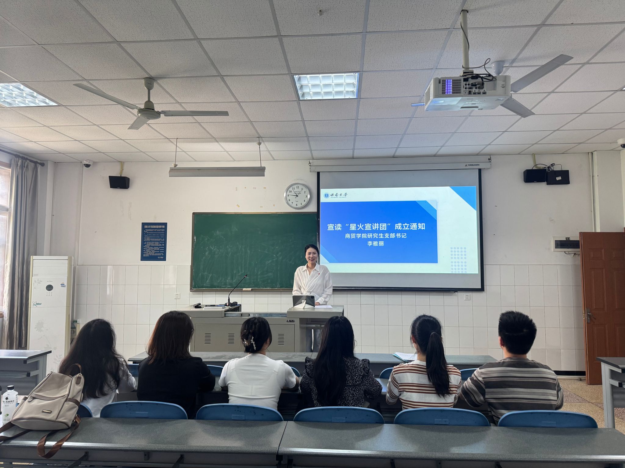 yl6809永利集团研究生党支部深入贯彻落实新时代党的建设总要求,于4月20日在第八教学楼305室正式成立“星火”宣讲团。党支部书记李雅丽、全体宣讲团成员出席成立仪式,李加陈同志主持活动。