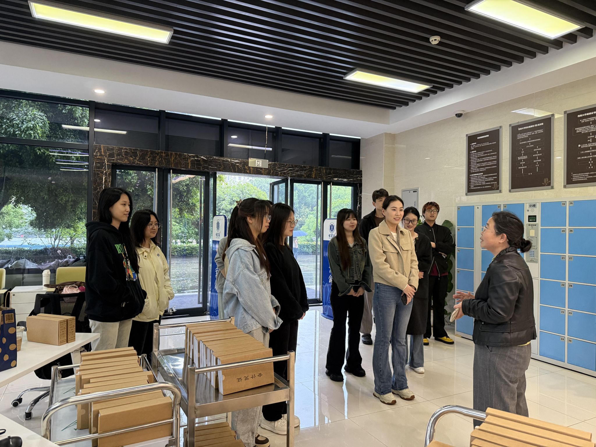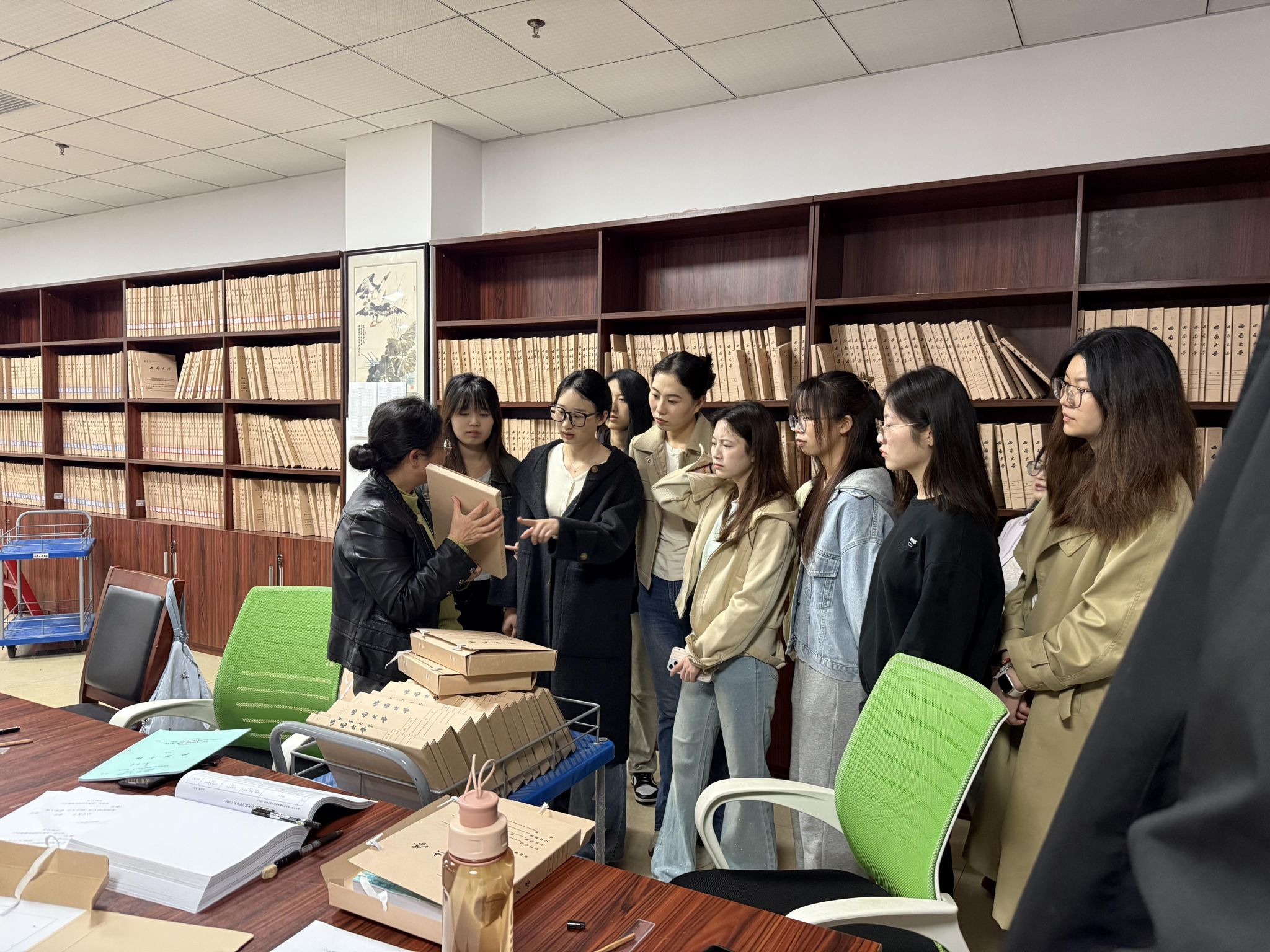 为提升学院研究生教育质量,提高研究生理论联系实际的能力,学院于4月29日下午组织2024级全体研究生赴学校档案馆参观学习。此次活动旨在通过实地观摩、业务指导与座谈交流等环节,帮助学生深入了解档案管理流程与档案数字化建设成果。
