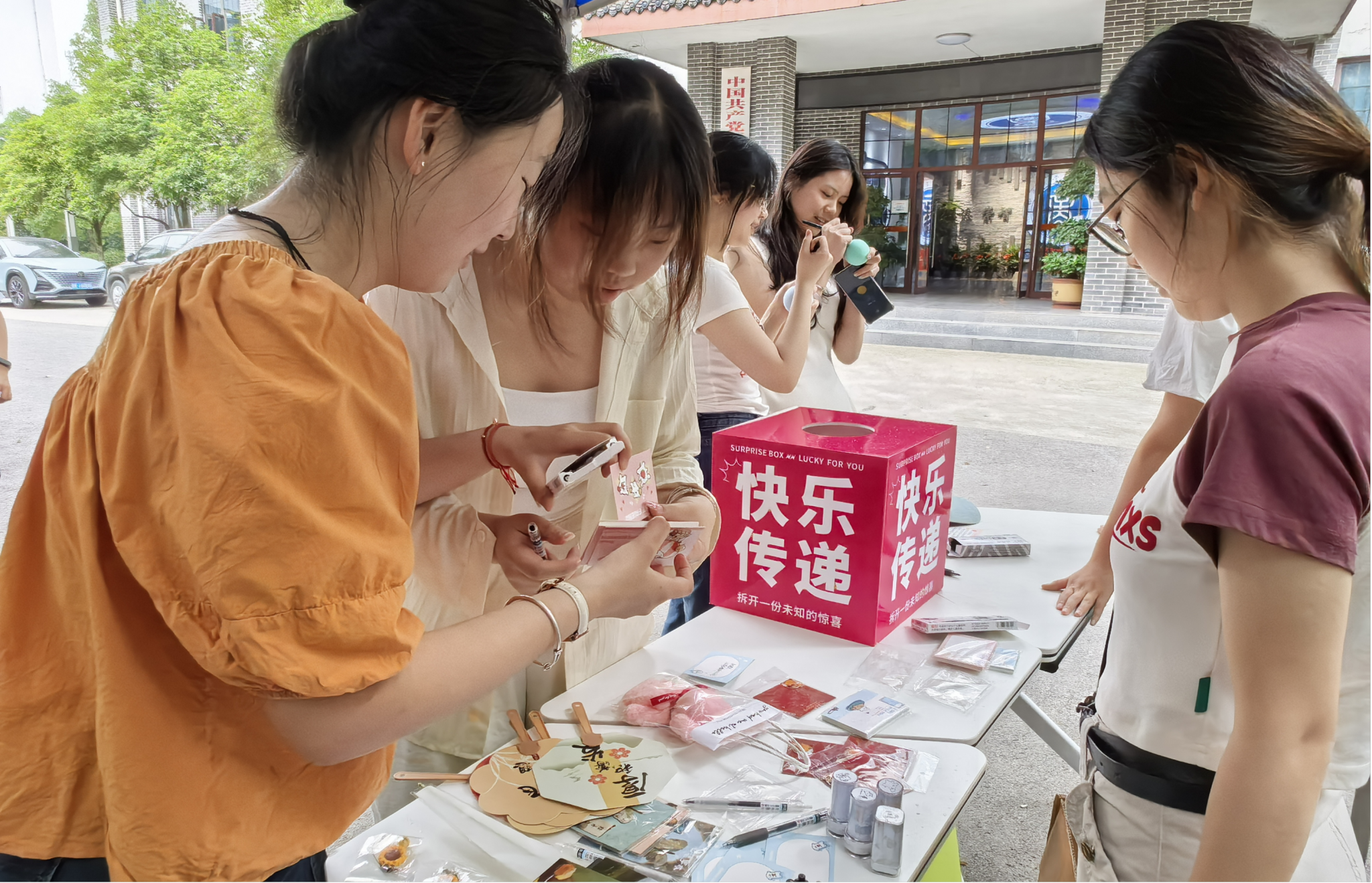 “正能量驿站:快乐传递便签”活动现场,温馨而热烈。同学们纷纷拿起留言卡,将生活中的快乐瞬间、内心的感恩之情倾注笔端,随后小心翼翼地投入箱子。当他们抽取他人便签,静静品读那些温暖故事时,快乐与感动在彼此间悄然传递,整个现场弥漫着满满的正能量。