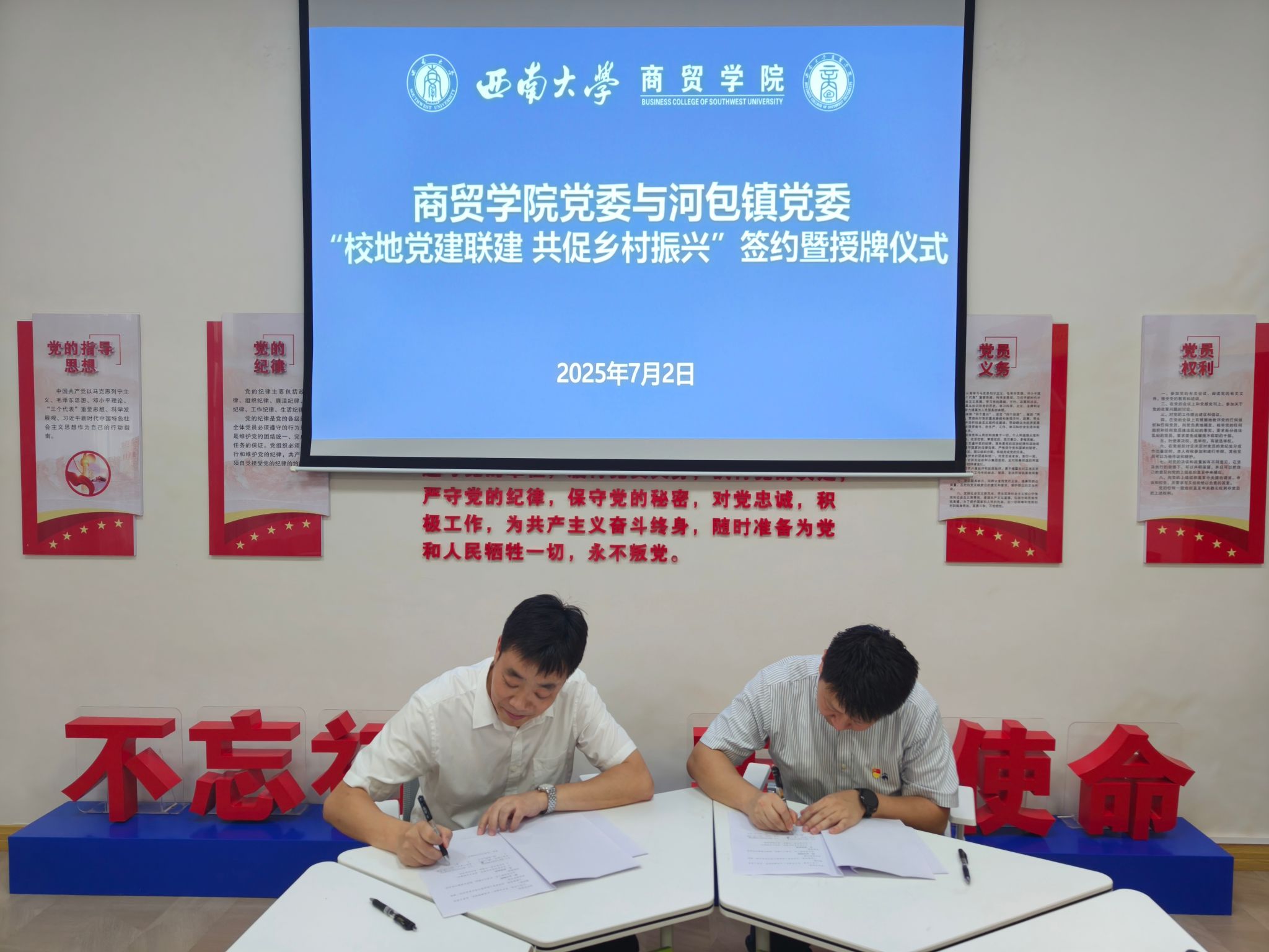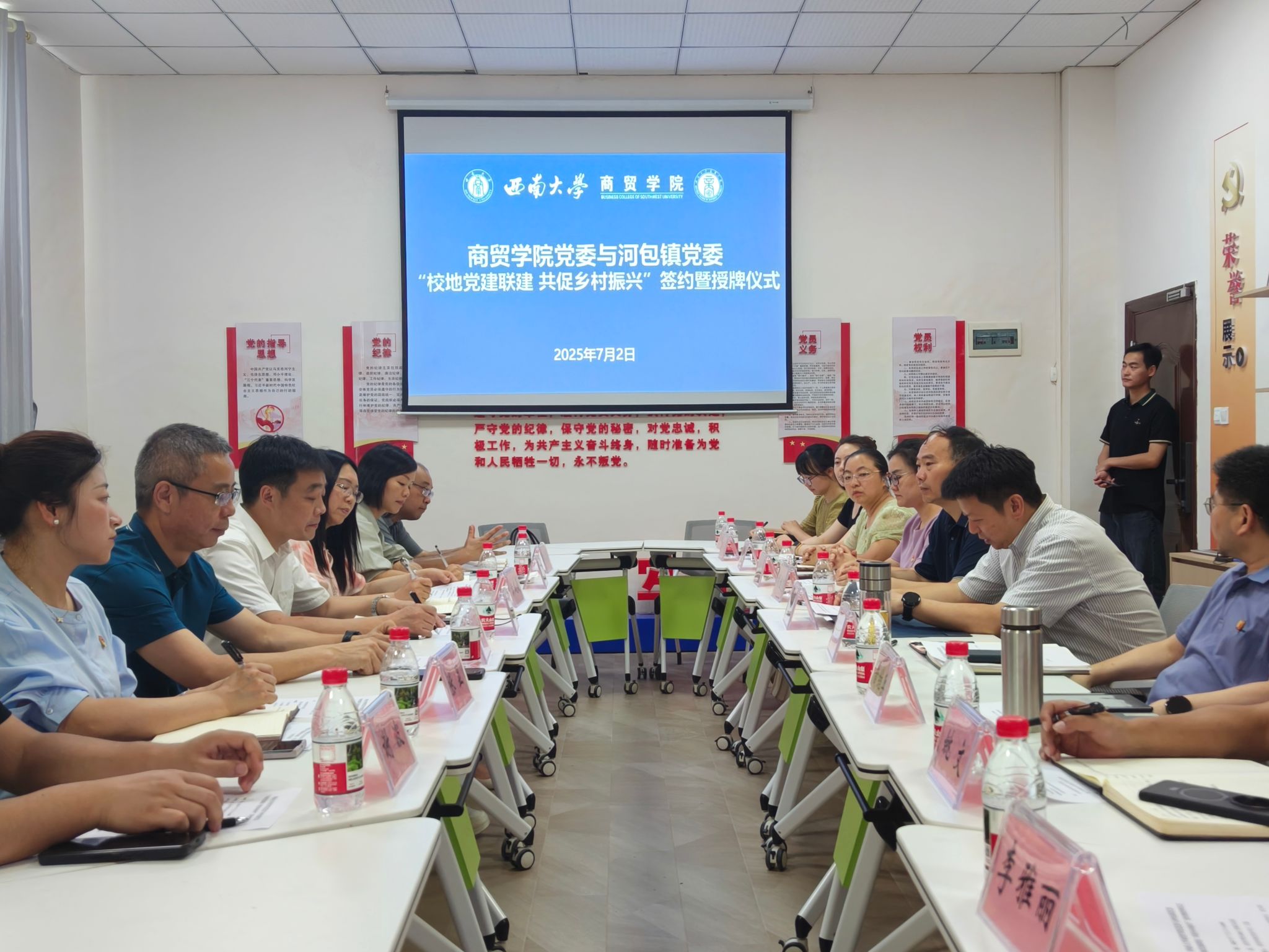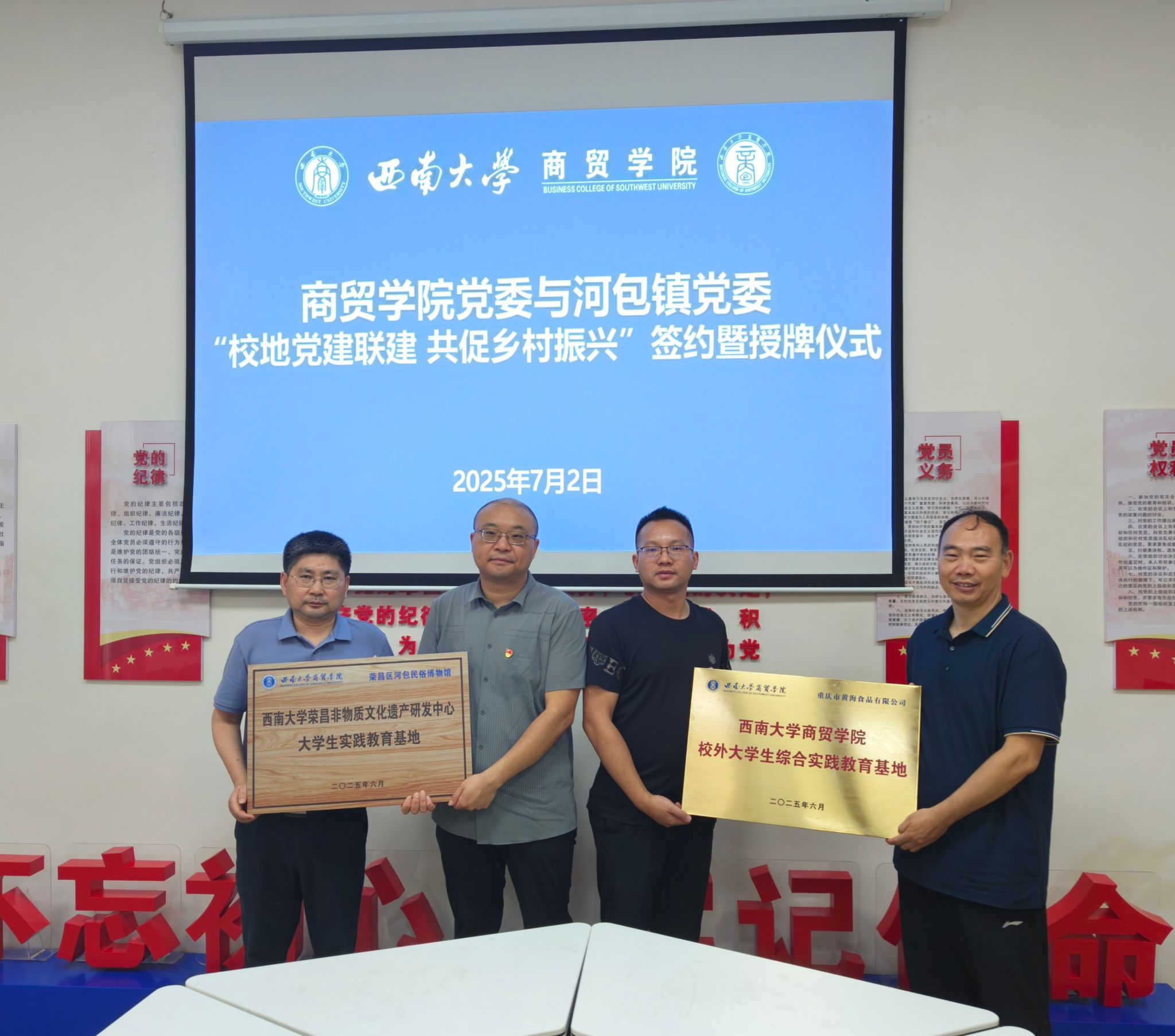 7月2日,yl6809永利集团党委与荣昌区河包镇党委“校地党建联建 共促乡村振兴”签约暨授牌仪式在yl6809永利集团8101党建活动室举行。联建活动以“党建引领、资源整合、协同发展”为宗旨,为校地双方深度融合、共促乡村振兴拉开了崭新序幕。