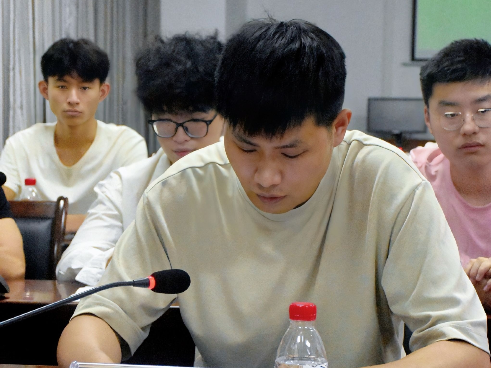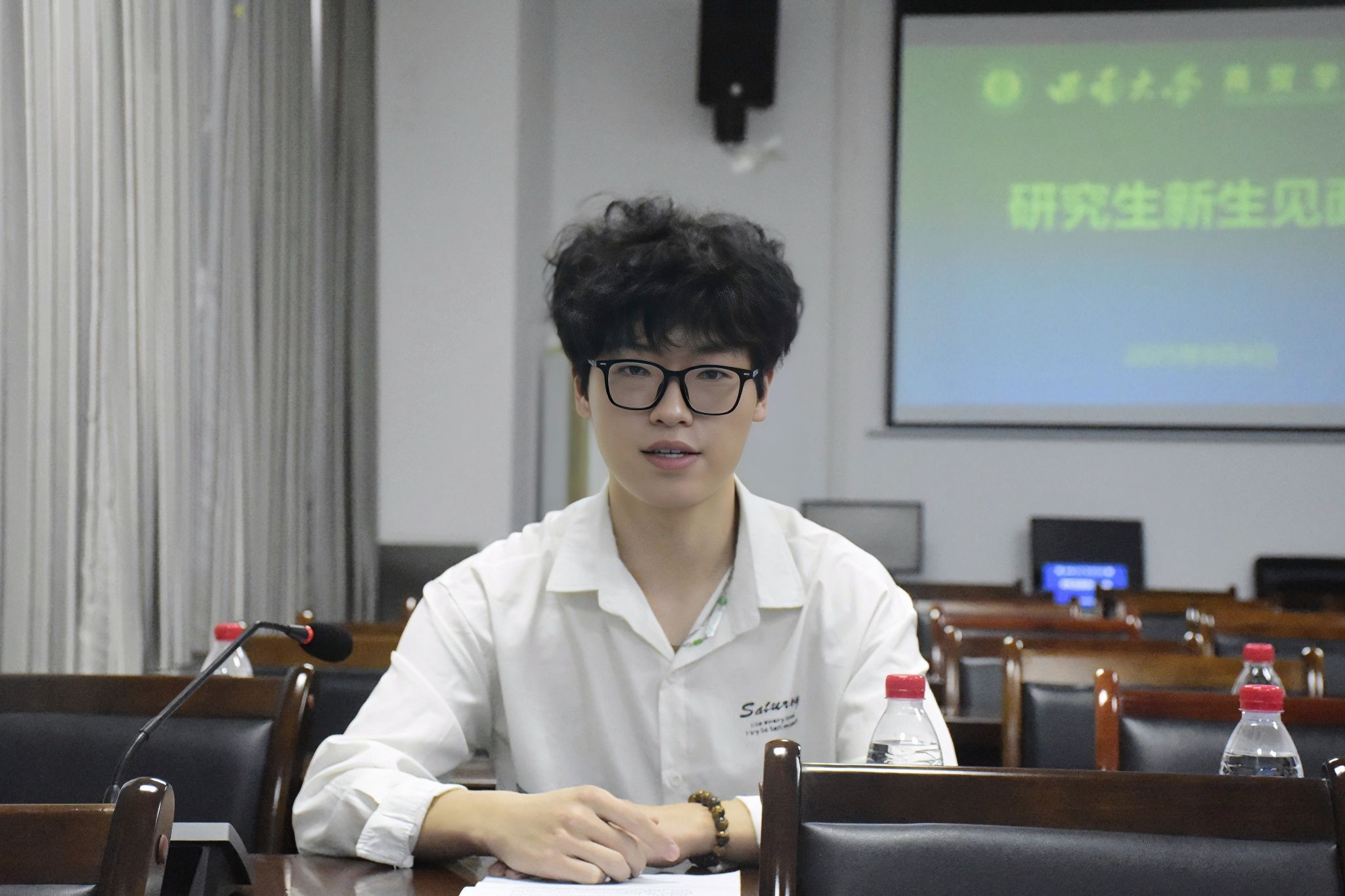 新生代表陈清扬发言,表达对研究生阶段的期待,承诺将与同学们共同珍惜学习机会,扎实提升专业素养,培养独立研究能力,尽快融入学院集体,在合作交流中共同进步。