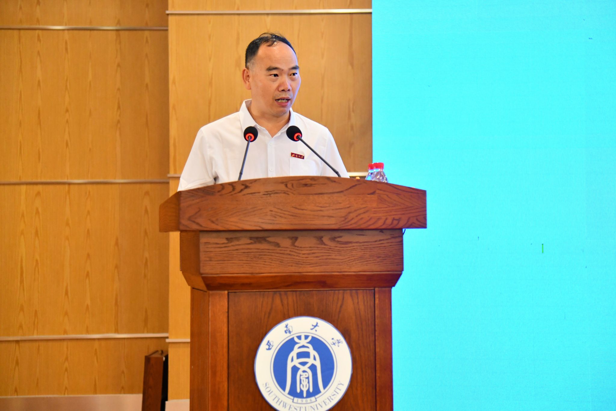 会上,学院院长张应良代表学院对全体新生表示热烈欢迎,介绍了学院的办学历史、学科特色和发展成就,并围绕新生成长提出五点期望:一要树立远大目标并持之以恒为之奋斗;二要将“深度学习”作为学习的核心;三要构建不可替代的核心竞争力;四要保持对社会的敏锐感知与深切关怀;五要强健体魄同时锻造坚韧内心。