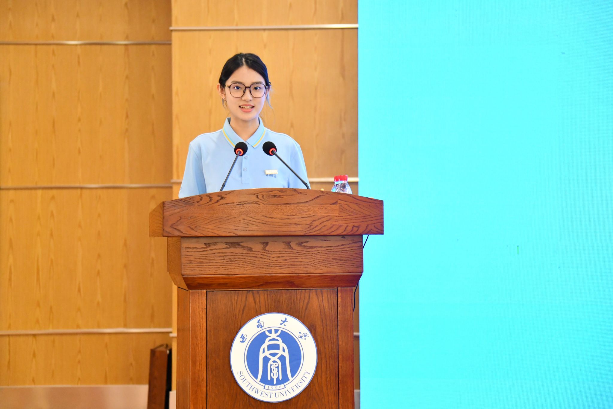 新生代表许欣妍代表新生表态,将珍惜学习机会,尽快适应大学生活,以优异成绩回报师长期望,在yl6809永利检测中心这片热土上用汗水浇灌青春、以实干笃定前行。