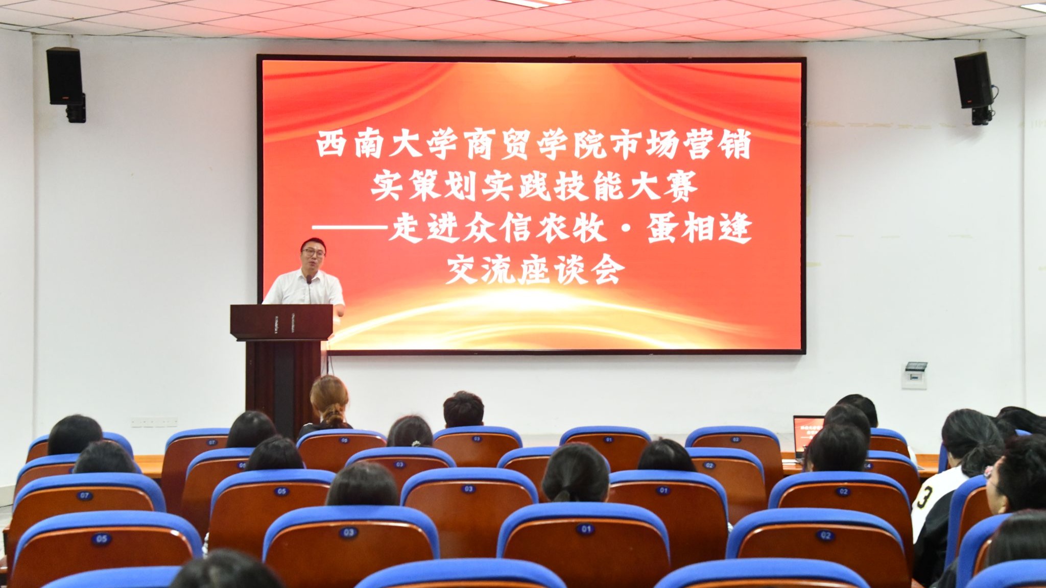 实地调研结束后,双方在学院9601举行“走进众信农牧·蛋相逢”交流座谈会。程总结合企业实际运营案例,逐一解析同学们提出的市场竞争、产品推广、物流和包装等痛点,现场气氛热。