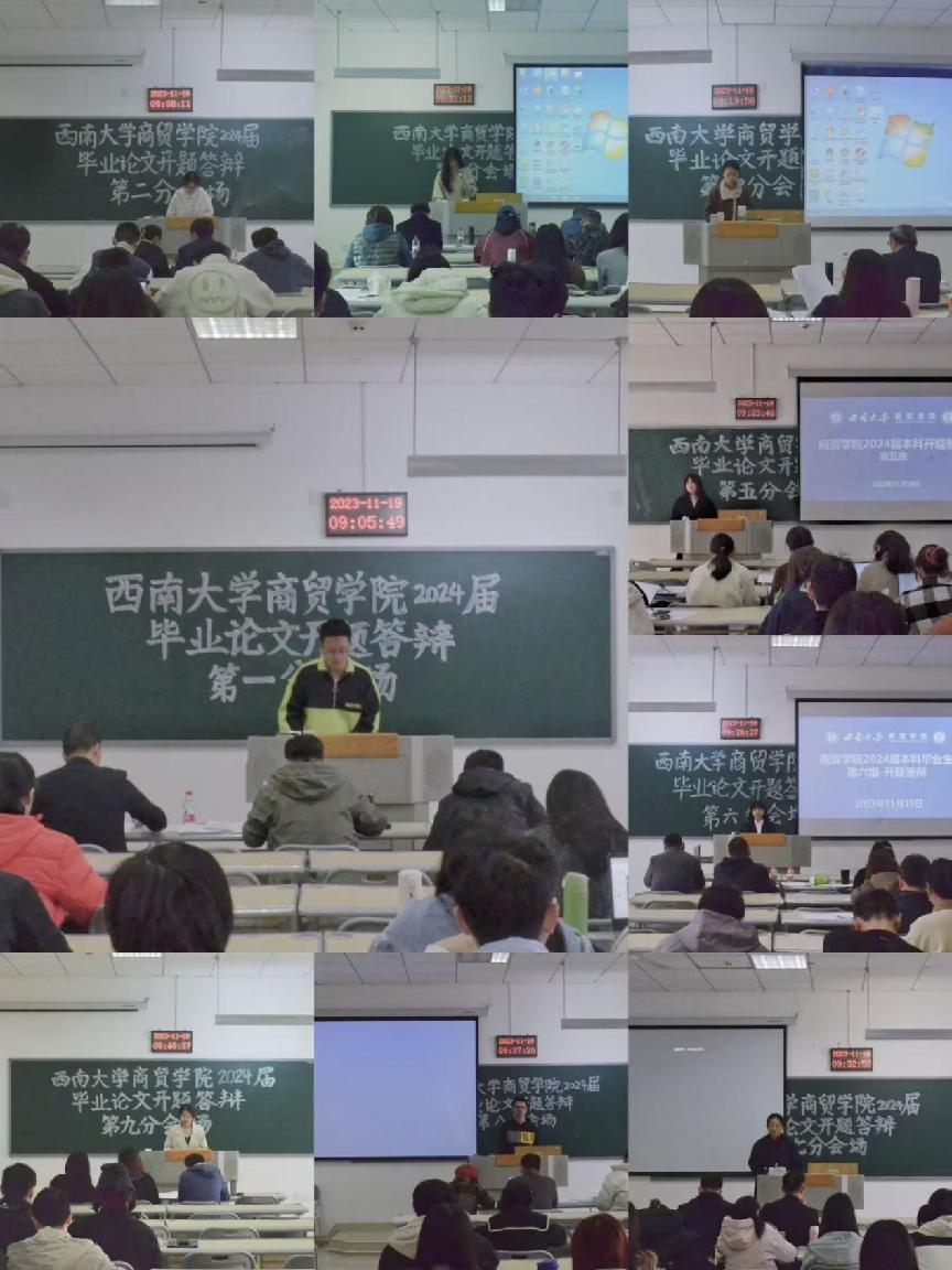 为切实抓好2024届本科毕业生毕业论文工作,确保本科毕业论文的质量,根据学院各专业人才培养方案,11月19日,商贸学院在第七教学楼顺利举行2024届毕业论文开题答辩会。本次开题答辩会涉及市场营销、公共事业管理、物流管理、国际经济与贸易、信息管理与信息系统五个专业,共安排14个答辩组。开题答辩组由教授、副教授担任组长,全体专任教师担任答辩成员,学院2020级共613名本科毕业生参加了开题答辩。