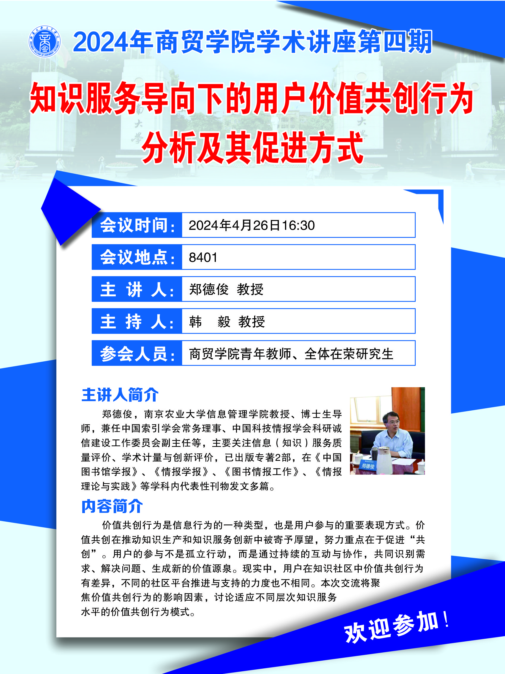 学术讲座:知识服务导向下的用户价值共创行为分析及其促进方式